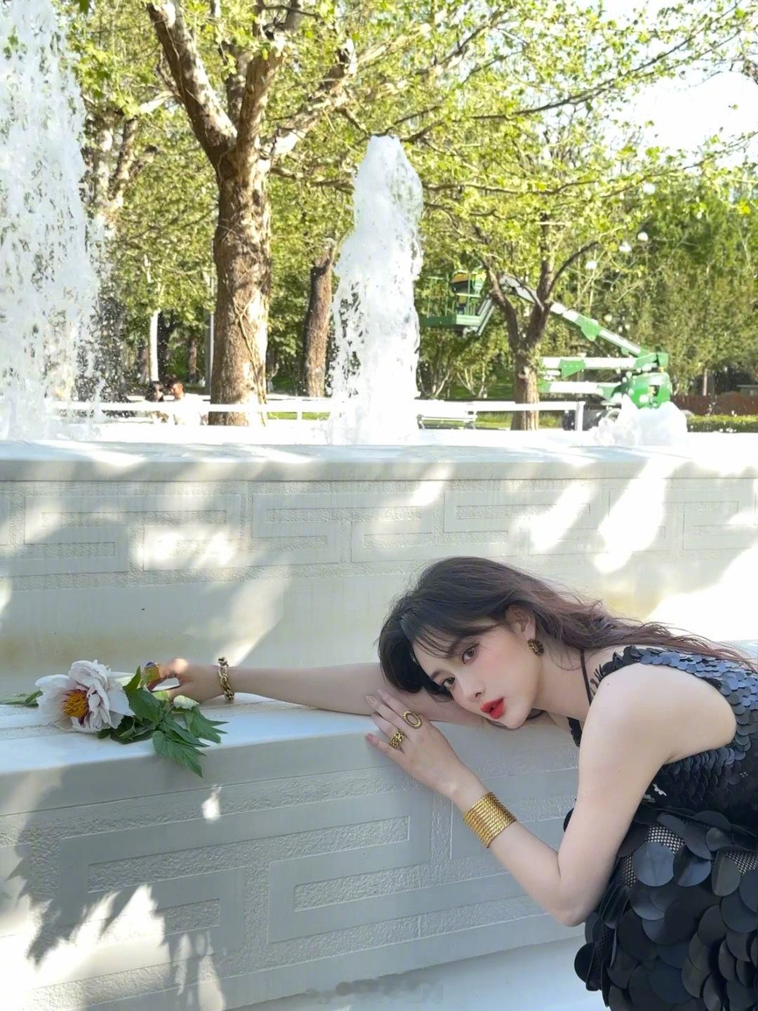 吴艳妮在成都穿着短裤大腿看起来很粗壮,表情自信又张扬