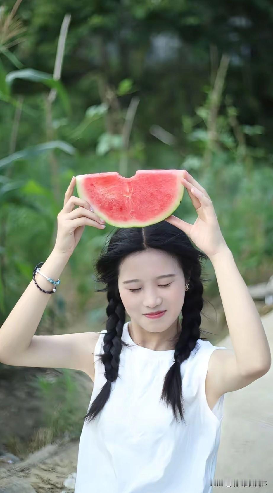 绿树荫中水蜜甜,红瓤满溢心欢颜。
