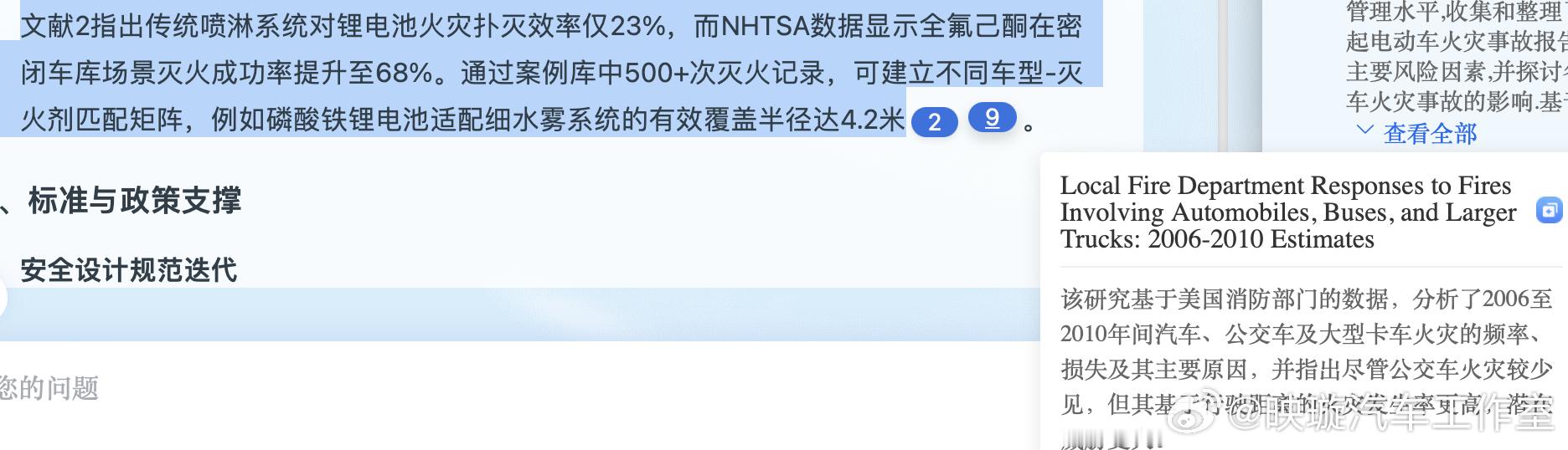 46辆车烧成废铁 地下车库之忧(2)第二,传统消防在它面前,已经失效。锂电爆燃,用时不到60秒。车库的传统灭火喷淋系统,要等到68℃才启动。等水流下来,火已经赢了。数据显示,喷淋灭火效率只有23%。更可怕的是,水会与锂反应生成更多氢气,等于火上浇油。这下,你懂了,为啥消防车灭电车自燃,杯水车薪。要很多水,用很长时间才能管用。第三,车距,是生与死的距离。研究数据清晰显示:地库车辆间距小于0.8米,火势蔓延只需2到3分钟。而许多地库的车距,仅为0.5米。这不是停车,是把几十个高危单元紧密排列,中间塞满塑料保险杠助燃剂。一辆起火,20分钟即成一片火海。第四,安全底线,被成本击穿值得警惕的是,大量车库仍沿用燃油车时代的半经验化设计,地库挡烟屏障高度不足(应大于0.7米),防火分区面积超标(应小于500平米),让氢气云肆意扩散,火势呈几何级增长。同时,近两成车企为压成本,简化安全设计,其车辆失火率高出合规车1.8倍。从车库到车企,防线处处是漏洞。回到首页继续浏览(3)解决方案济南恒大城地下车库疑有电车起火