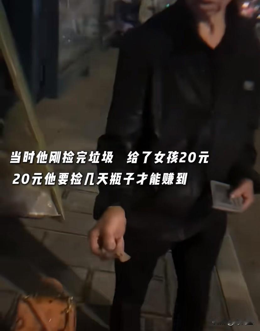 看完鼻子一酸 一个小姐姐在楼下哭,捡垃圾的爷爷塞给她20块钱,女孩哭得更凶了,我眼睛也下雨了… 我们总是被一些善意和温暖所感动。 爷爷虽然不富裕,可是他内心很富有,善良,有爱心!真是太难得了!靠捡垃圾赚20块钱,得很久吧……但是能安慰到女孩,他觉得值![赞] 愿我们每个人,都是温暖有爱心的人,让这个世界更美好!