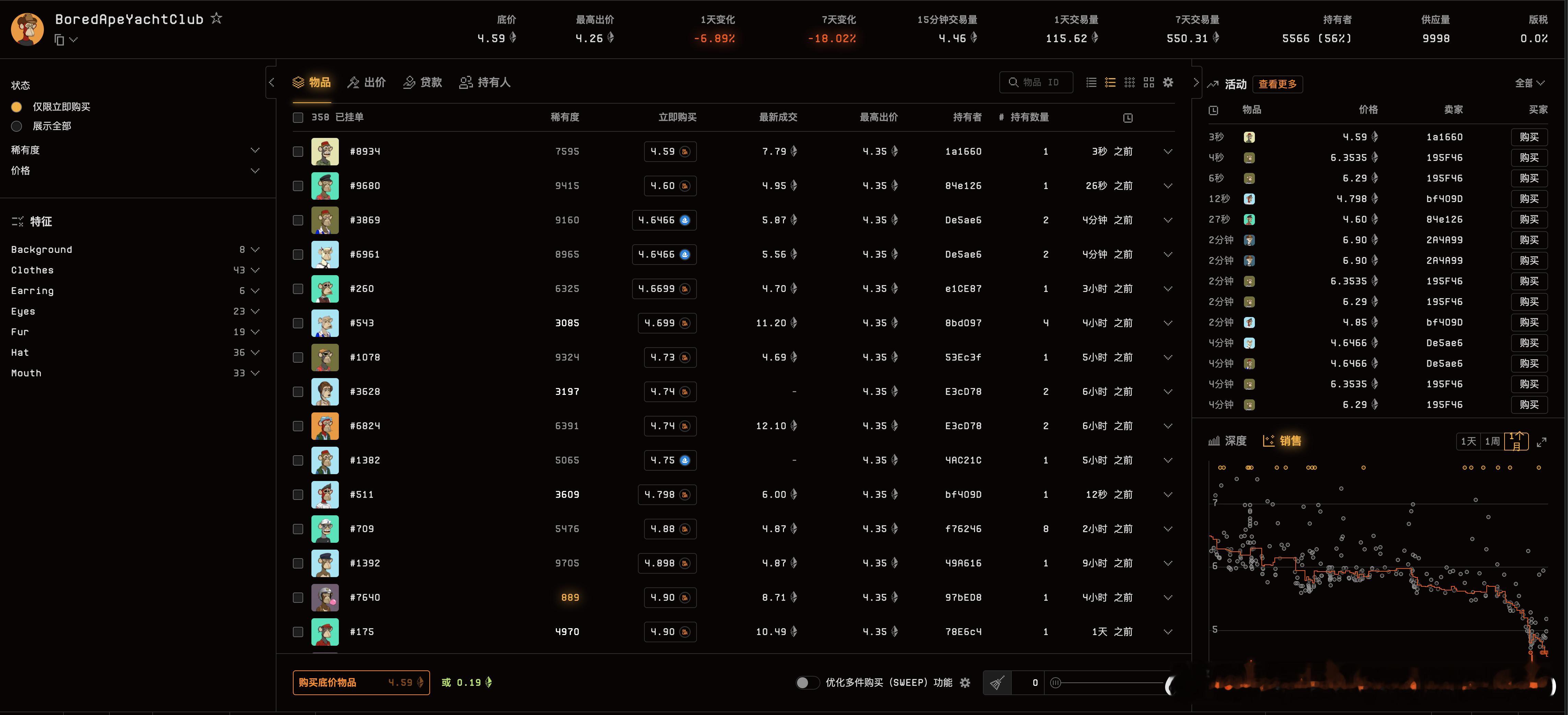 当年巅峰 153 ETH 的时候一只猴子能换一套豪宅现在 4.59 ETH 不忍直视