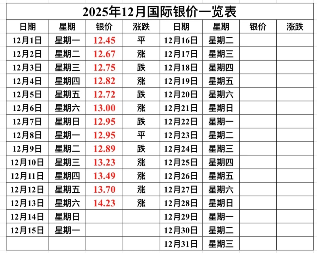 看了眼近20年的银价趋势,还有12月份的每日价格变化,你觉得银价飙涨,现在还能上