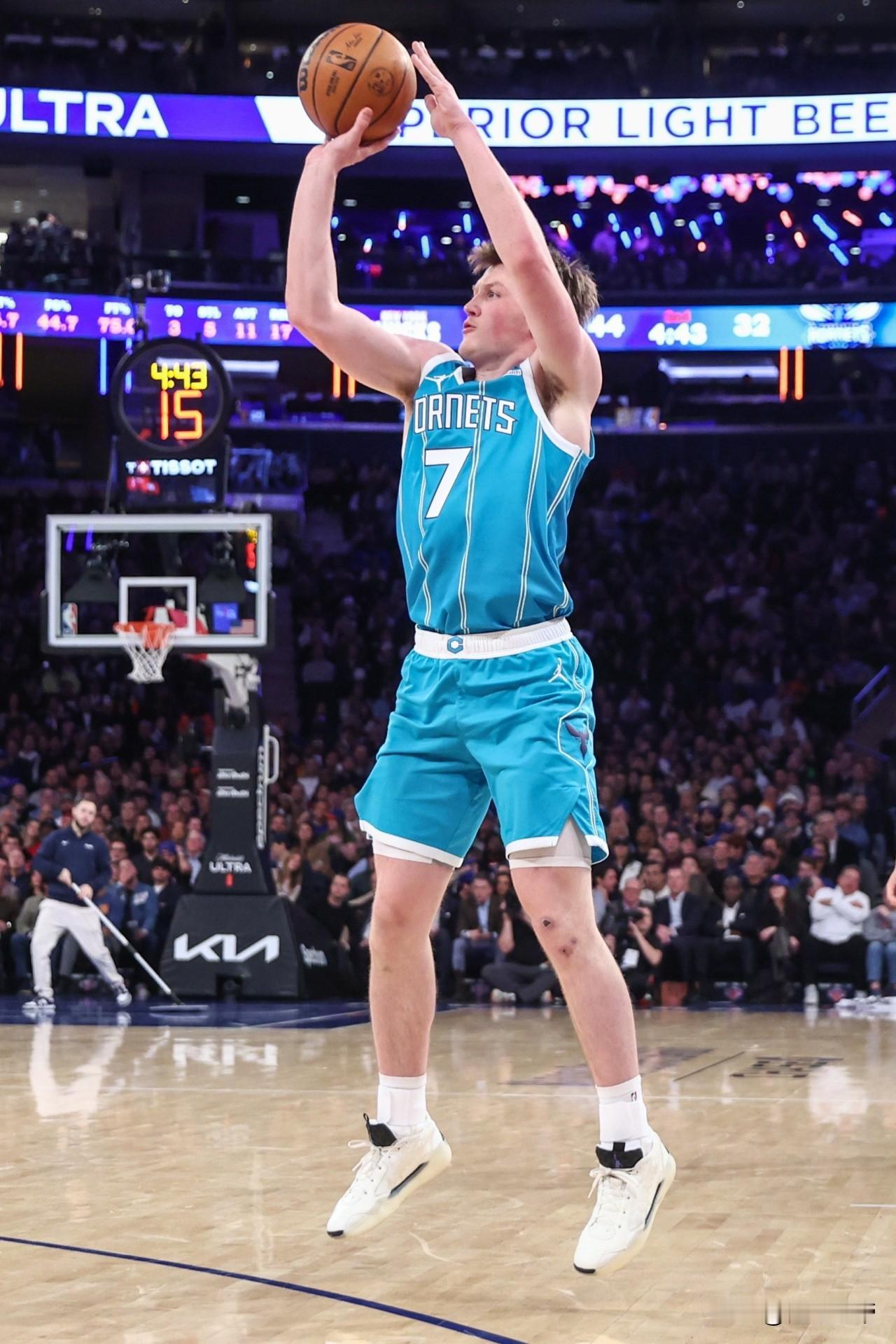 黄蜂也有了新库里,4号秀克尼佩尔爆砍33分! 在今天黄蜂与公牛的比赛中,黄蜂队今年选中的4号秀克尼佩尔表现相当出色,全场出战36分3秒,投篮21投12中,三分12中5,罚球4中4,爆砍33分5篮板9助攻的数据,遗憾的是黄蜂126-129惨遭公牛逆转。 克尼佩尔本赛季场均可以拿到18.6分5.4篮板3.5助攻的数据,力压状元榜眼探花成为了本届新秀的得分王,也是最佳新秀最大的热门。 克尼佩尔被看作是黄蜂的新库里,三分命中率高达40.4%,场均可以命中3.6个三分,远远超过了同期库里,未来相当可期,已经成为了黄蜂建队的核心。
