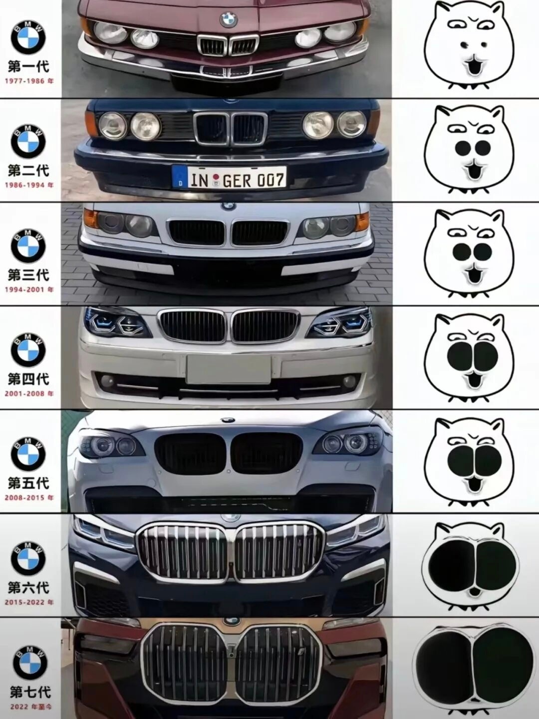 宝马的设计灵感是跟着包情包走的?还是说包情包是跟着宝马的设计来的?这张图可以承包一天的笑点了