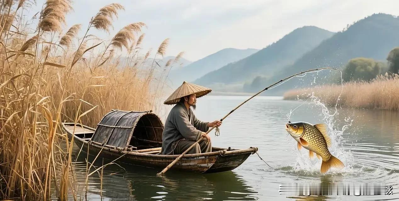 芦荻深处系短篷, 浮沉不问几秋冬。 忽觉竿头金鳞动, 愿者上钩神钓功。