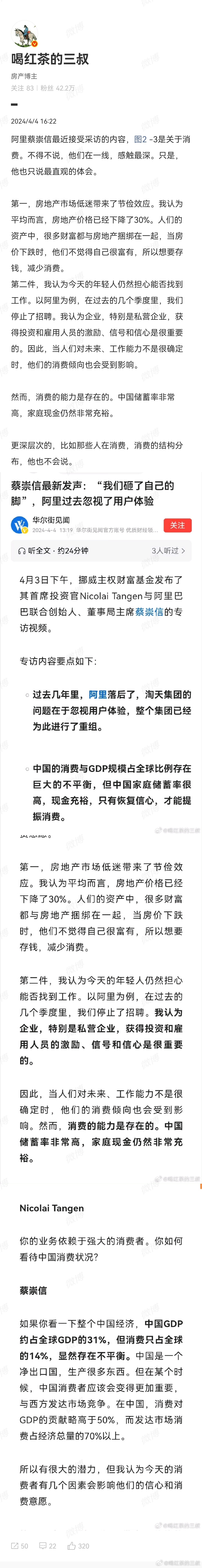 阿里为啥能依然存在,业务还有所反弹,因为他们高管是真正读书人,有见识。蔡崇信不会轻易公开说话,但是你看看他去年(2024年)4月份说的话,直接本源,不忽悠。他也是高学历的人。不是不要读书,是要读好书涨见识,能看清楚事物,规律的本质。