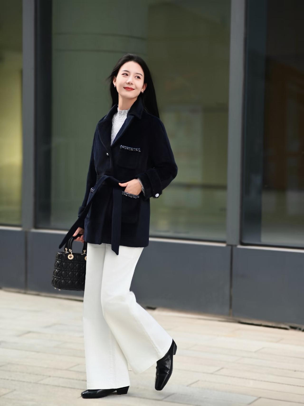 优雅自信穿搭分享黑色的中长款外套,搭配白色的阔腿裤和黑色的皮鞋,知性优雅气质,休闲通勤都非常合适!