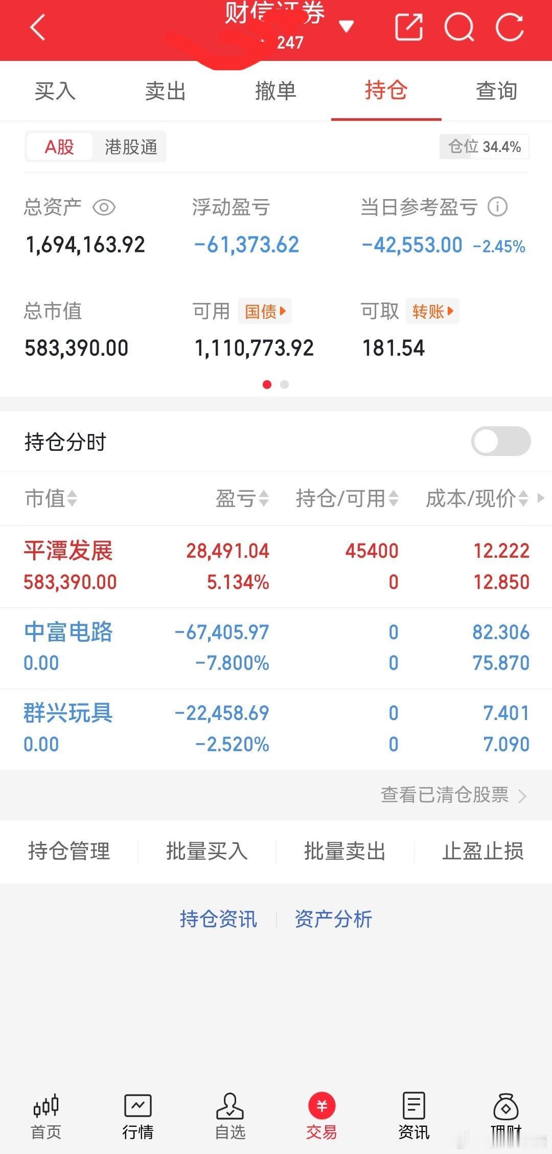 12月11日持仓:卖出群兴玩具!中富电路买入平潭发展!!!股市A股如果大家对个股操作把握不准,欢迎通过私信与我交流!特别声明:本内容为个人实盘记录,不构成投资建议,更不鼓励跟买!股市有风险,投资请理性 ! !!点赞,是对我分享的最大支持,关注我,时间会给你最真实的答案!!!