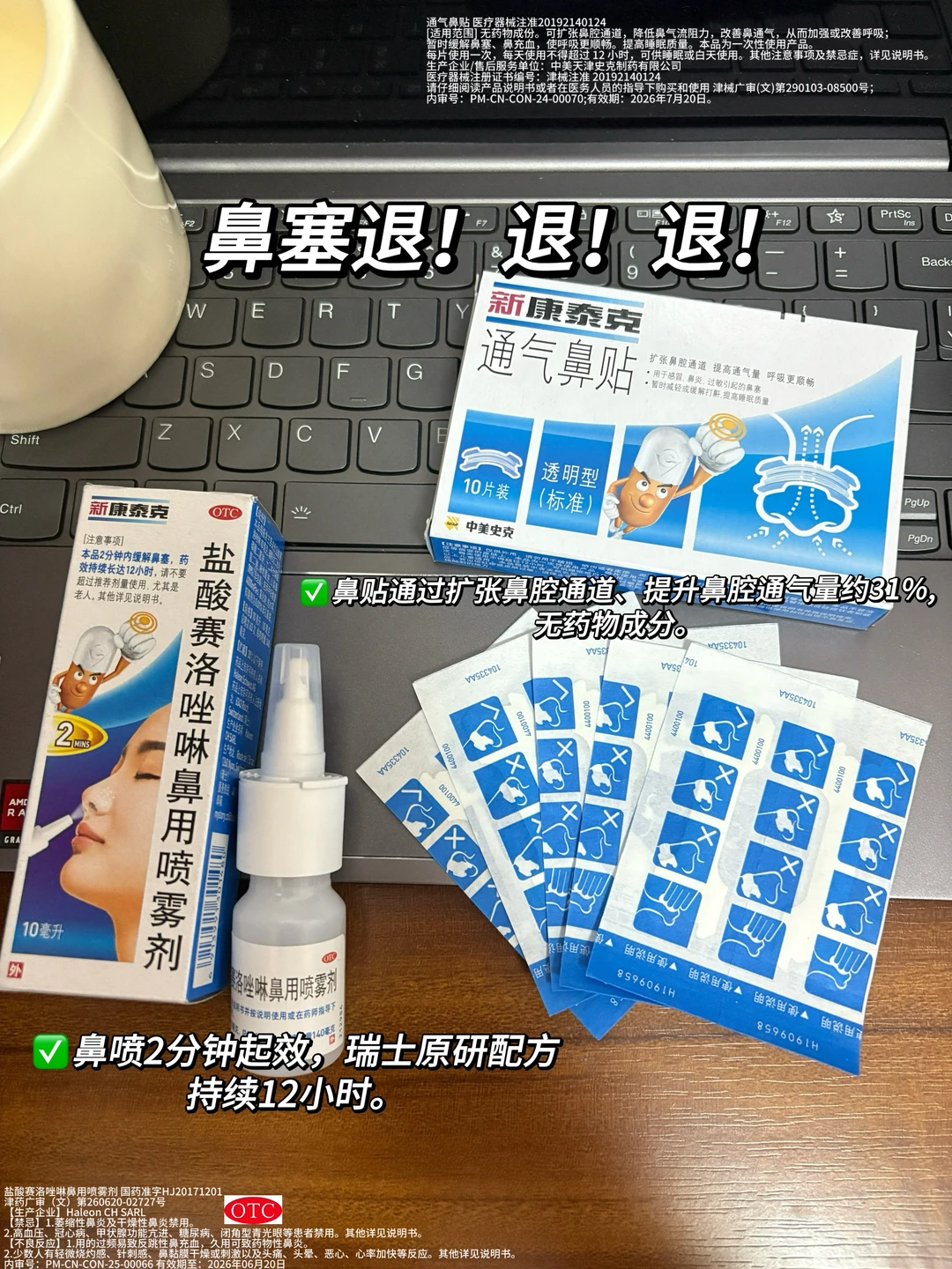 除正确使用感冒💊外,辅助产品也重要,晚上因鼻塞而不好入睡,可选新康盐酸赛洛唑啉鼻喷或新康通气鼻贴~鼻喷瑞士原研进口,2min起效,维持12h;鼻贴物理通鼻,正确佩戴,提高31%通气,孕妈和小孩都友好~
