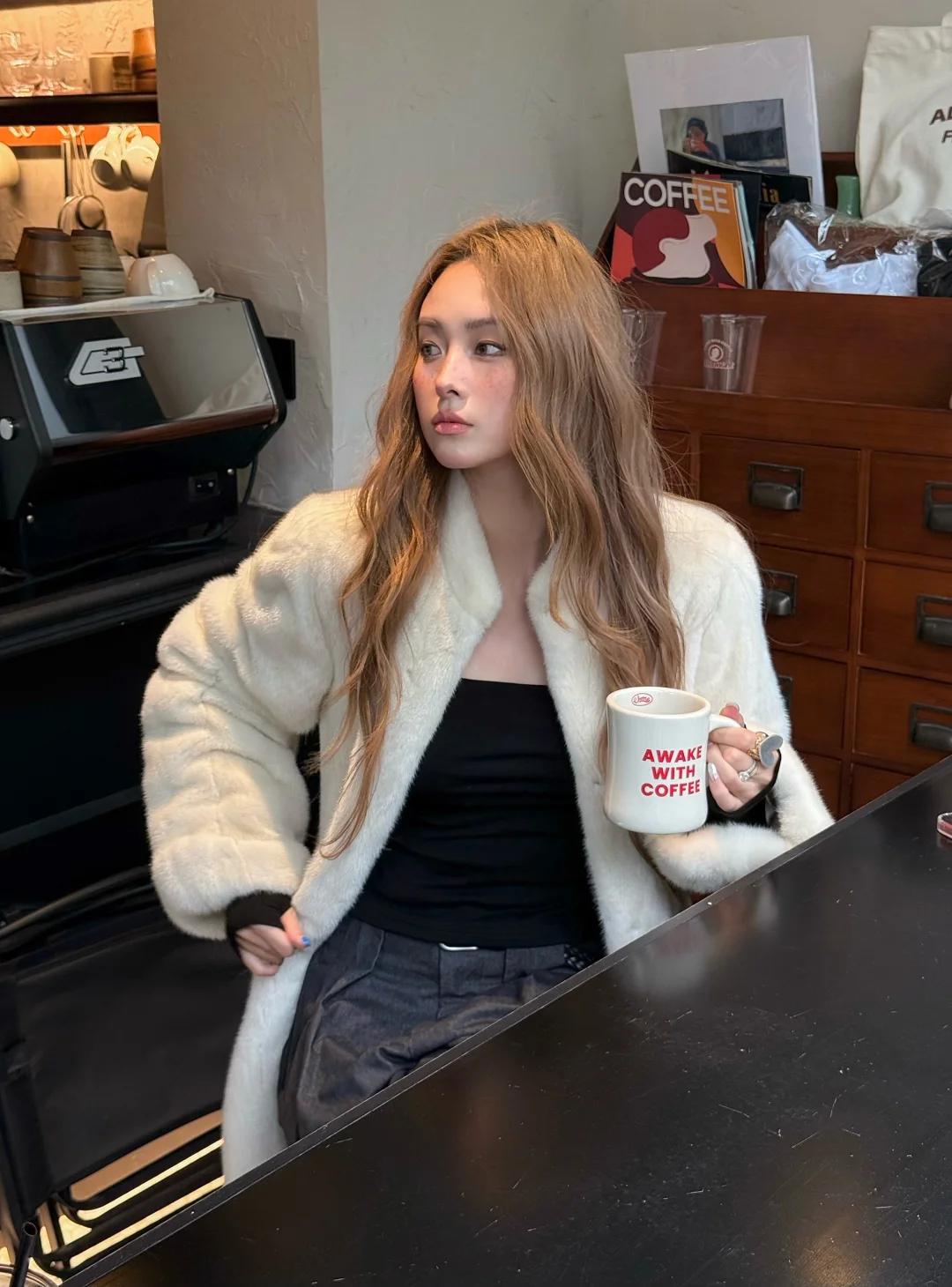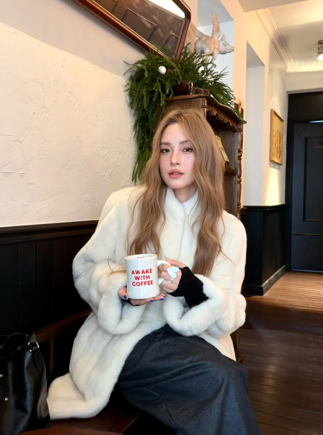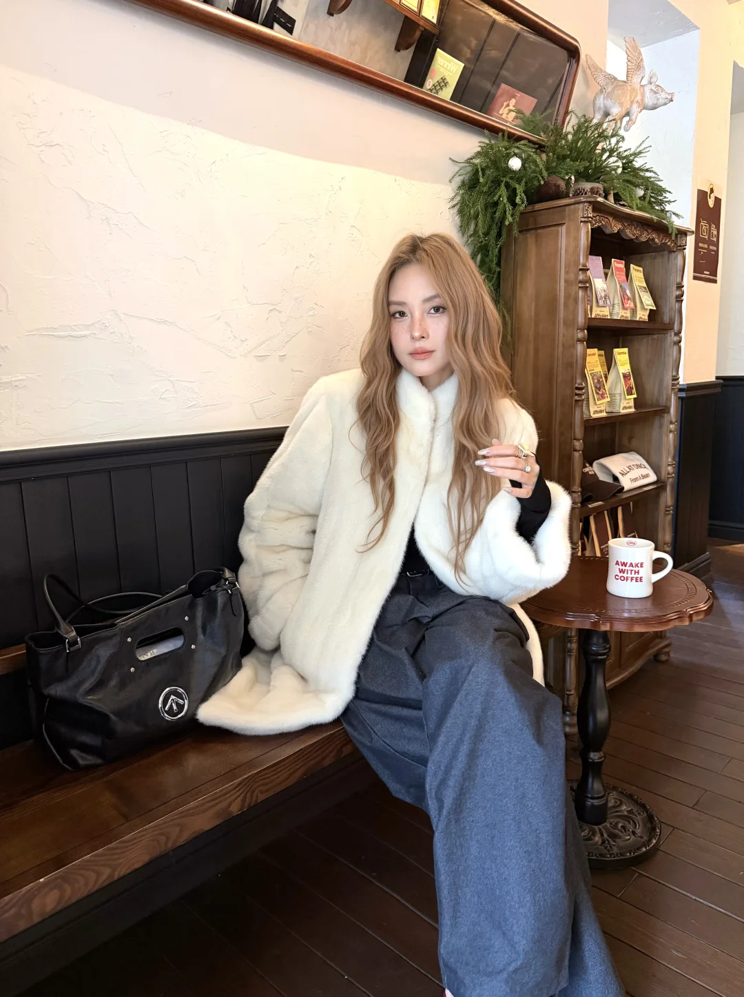 那咋了 拿起大衣出门 晒晒阳光喝咖啡☕️ 躺过一天 世界也不会毁灭啦 🐈•*.~ 皮草穿搭慵懒感穿搭毛毛外套冬至阔腿裤休闲裤保暖穿搭降温穿搭大衣穿搭不要放弃下午四点