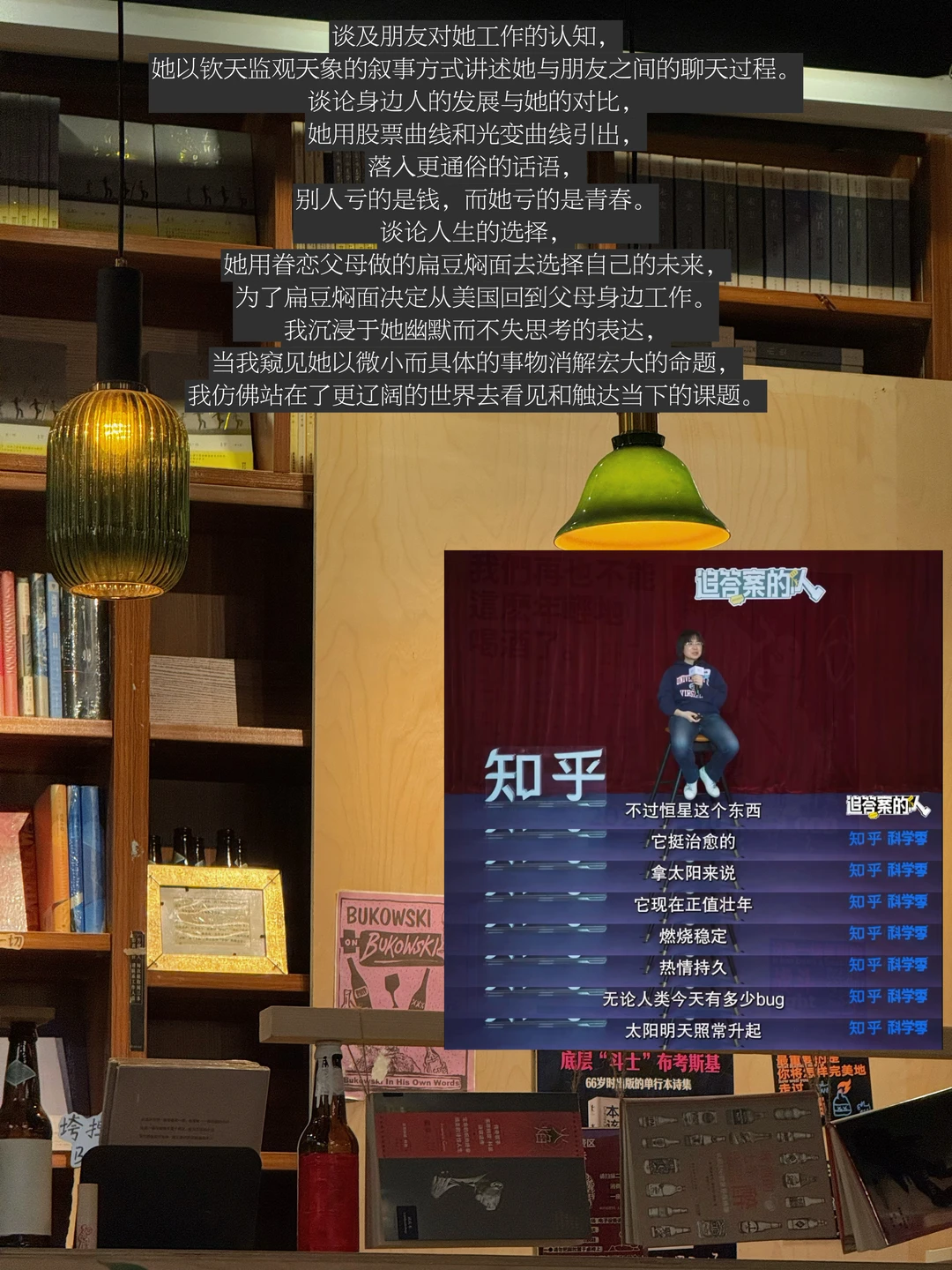作为天文台副研究员的孙萌,用天文学的学术名词触达生活中的观察,我沉浸于她幽默而不失思考的表达,当我窥见她以微小而具体的事物消解宏大的命题,我仿佛站在了更辽阔的世界去看见和触达当下的课题。当新的认知以快乐的方式进入我的身体,那些看似沉甸甸的焦虑事物都被轻盈地消解。