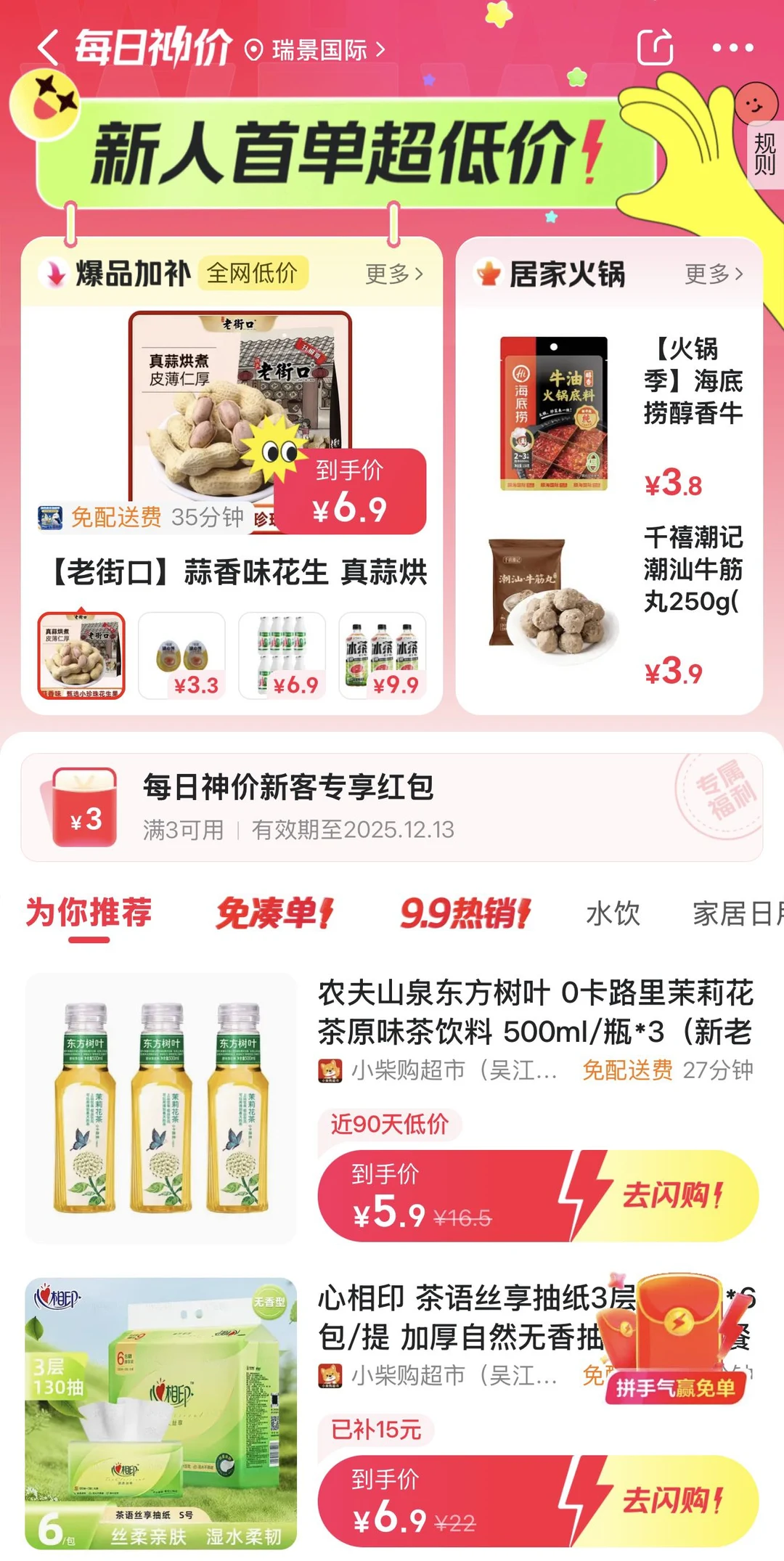 谁懂啊!晚上窝在沙发上追着剧,嘴巴突然空落落的,零食柜早就被我扫荡一空,大冷天的真不想下楼买😭 还好有美团闪购半小时就能送到家,不用出门就能买到想吃的零食!真的太方便了! 重点是价格还很划算!满小泡肥汁米线才12.9r;麻辣王子辣条,才1.9r;王小卤虎皮凤爪软糯脱骨才9.9r! 还有卫龙魔芋爽2.3r、食族人酸辣粉7.8r、奥利奥云朵蛋糕10.5r…全都是无需领券凑单的神价! 🔍美团App 搜索 “深夜救急” 直达会场,认准 “神价” 标识,无需凑单到手就是最低价