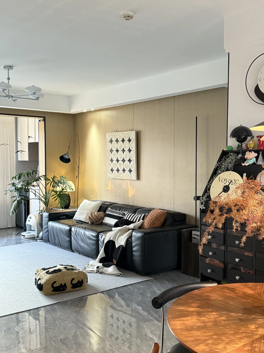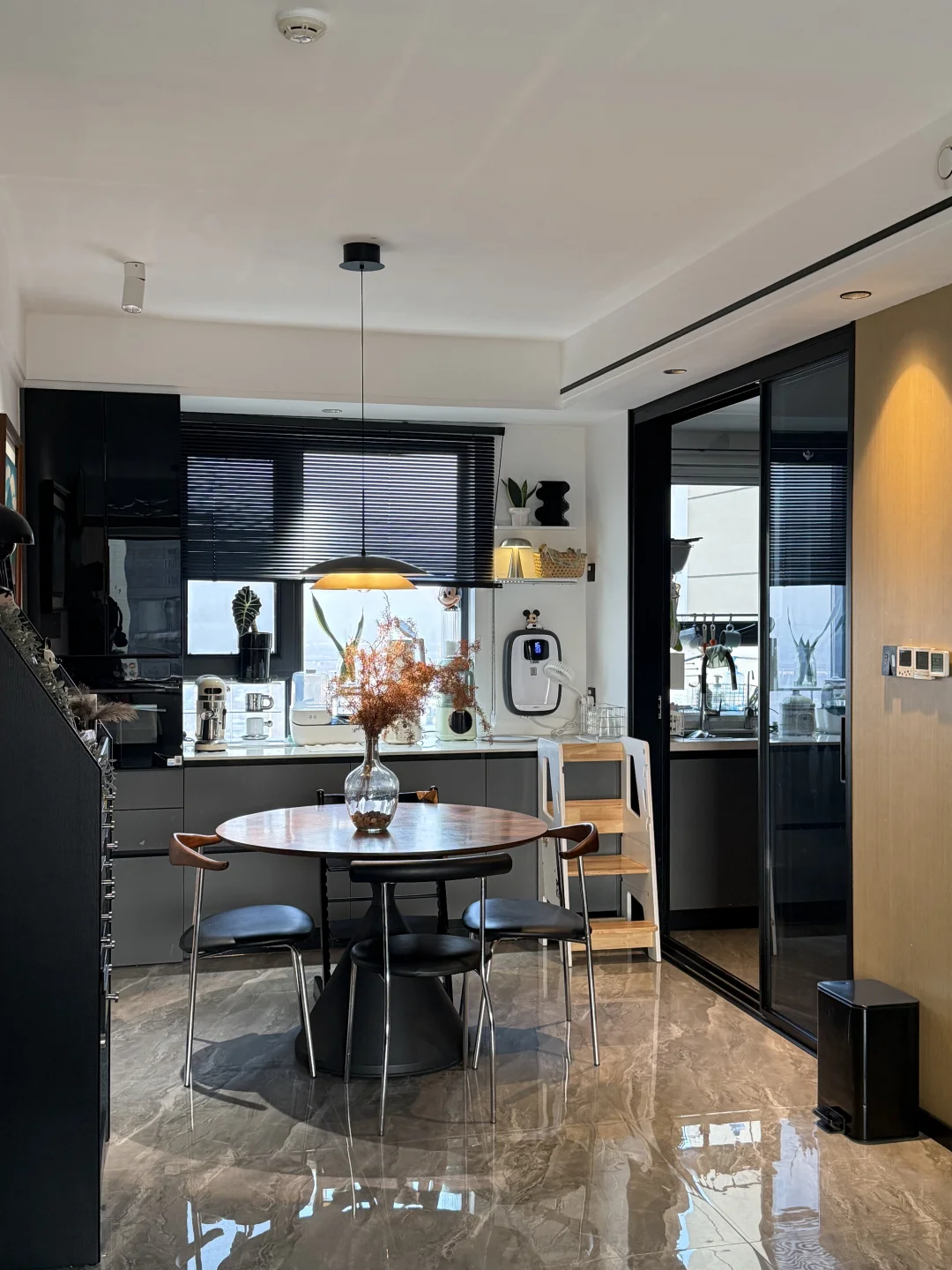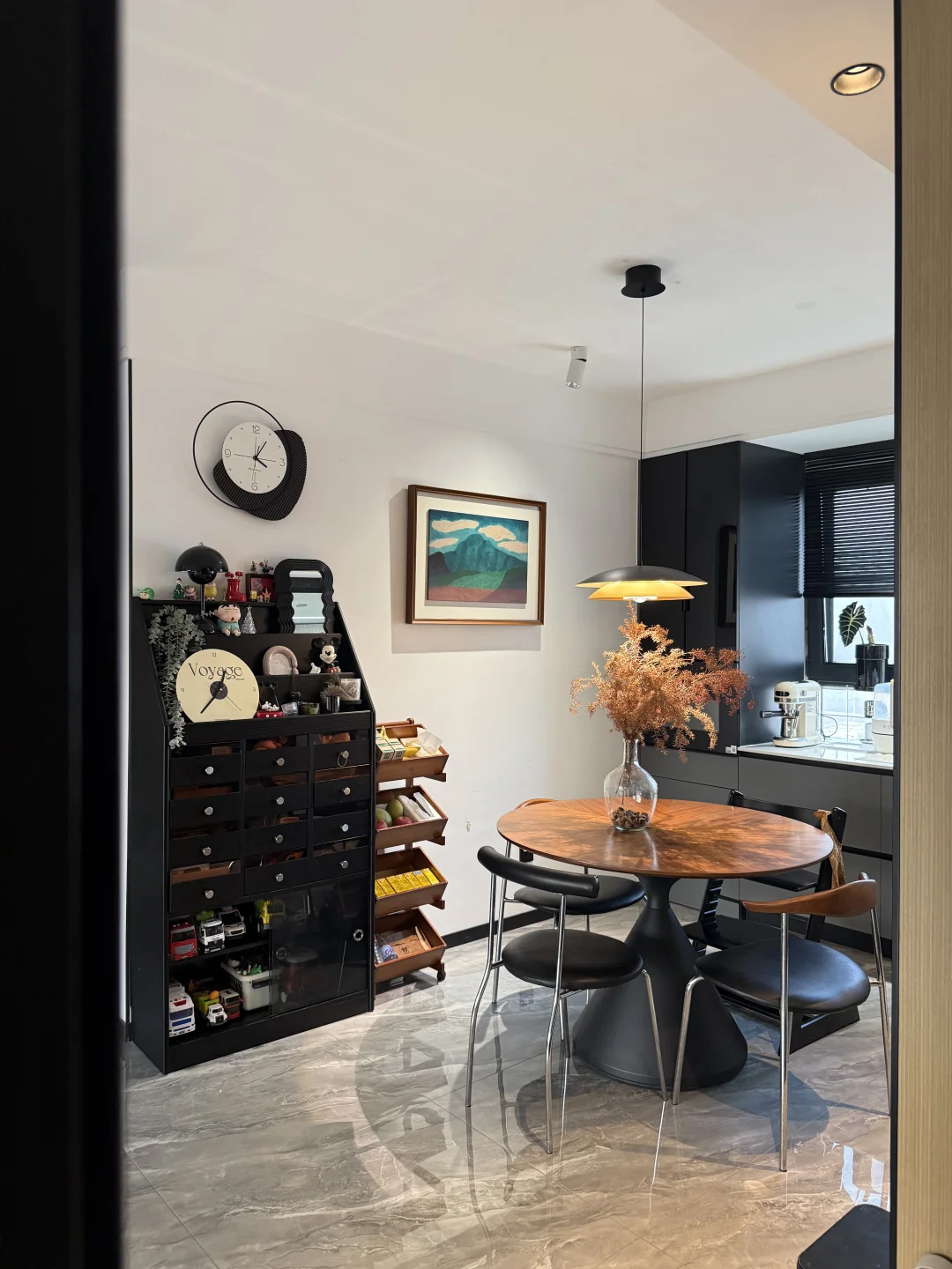入住第四年 好像深色系装修也没那么不好看吧! 换了圆桌 加了胡桃木的一些配色还挺温馨自然的 有点中古风的氛围了~
