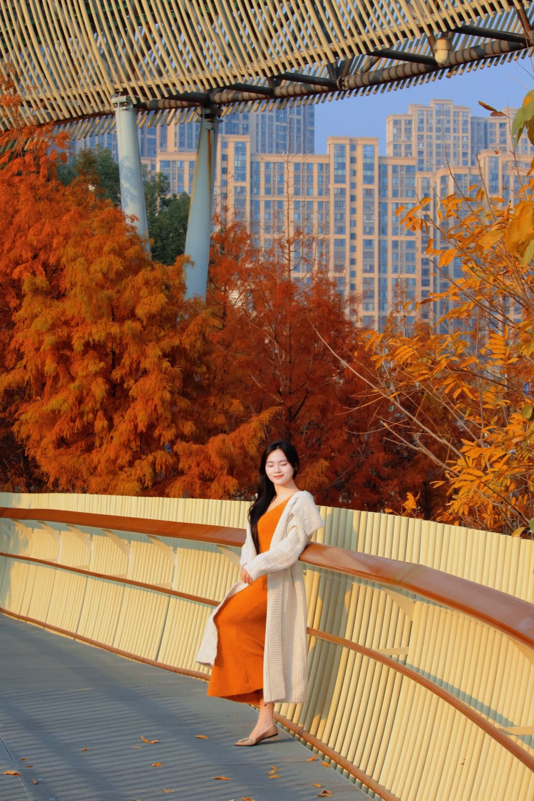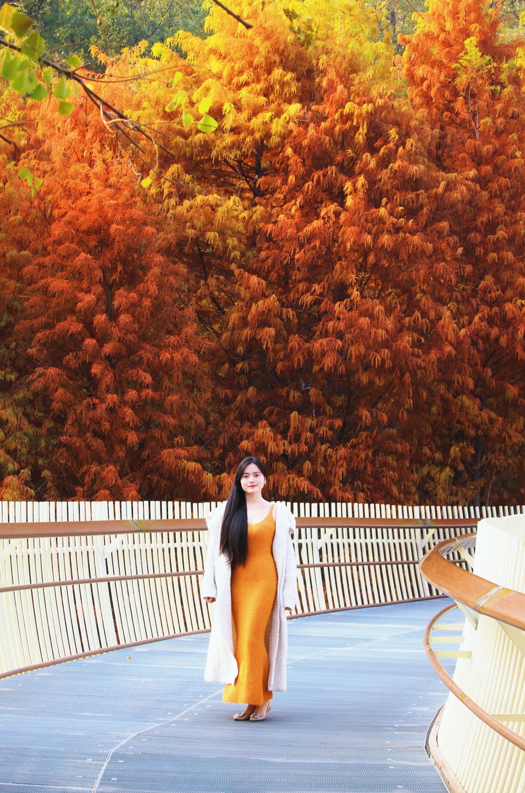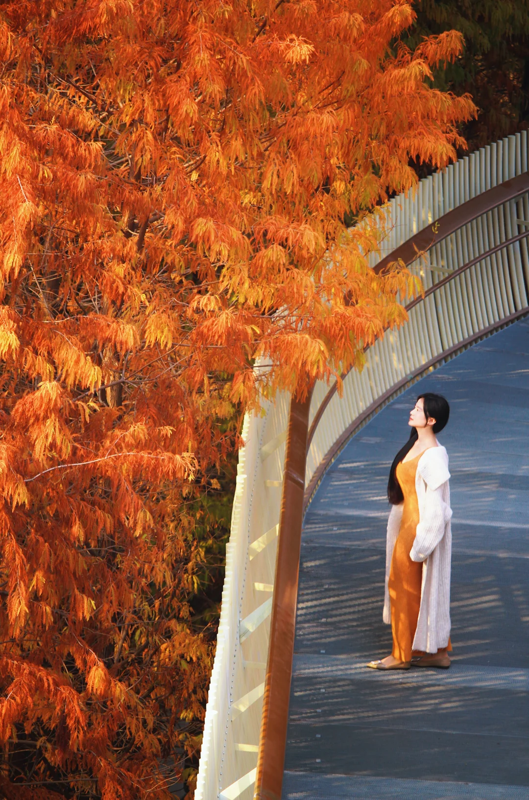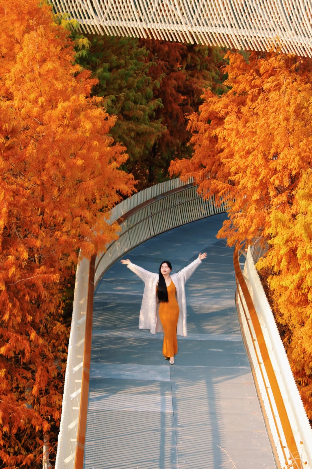 秋天的磨盘山森林公园真的太美了!漫步在红杉树丛里的步道,真的太浪漫了!从东门进,红杉树就集中在前面几个栈道圈中,从上往下拍非常出片!