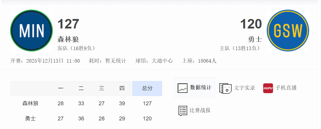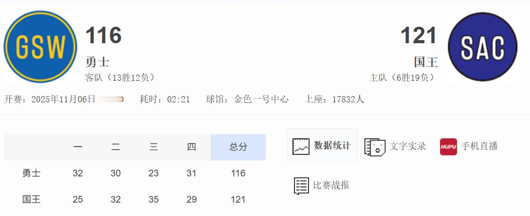 输给没有字母的雄鹿,输给一场没赢过的步行者,输给三个主力不打的国王,输给没有杜兰特的火箭,输给没有爱德华兹的森林狼。勇士这赛季的输球也算是真是记忆点拉满了NBA