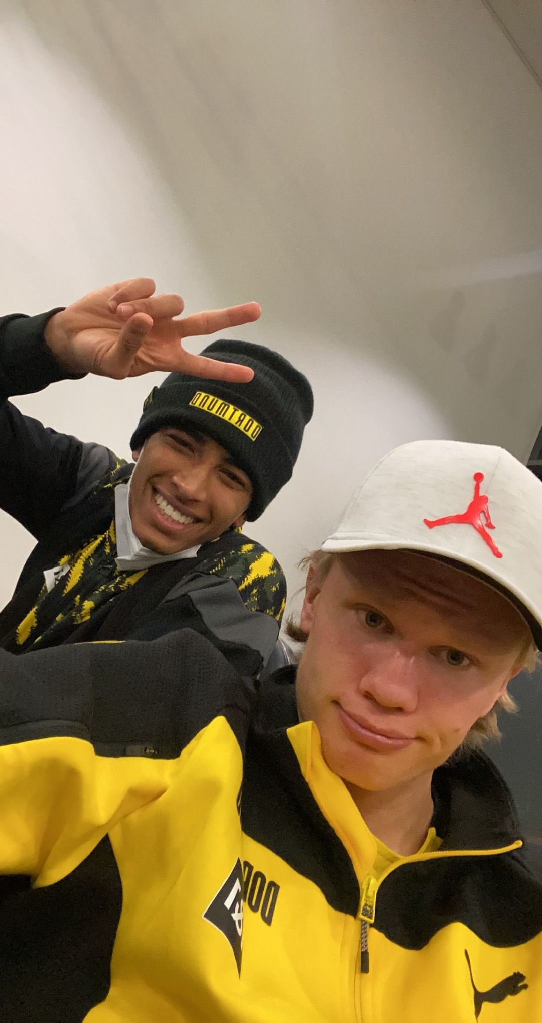 哈兰德社媒发布了两张与贝林厄姆的合影: