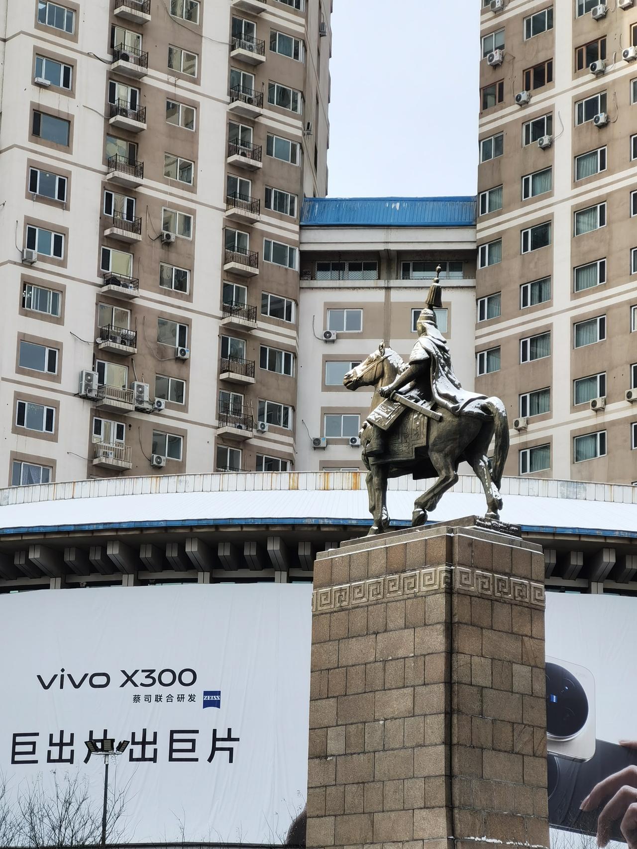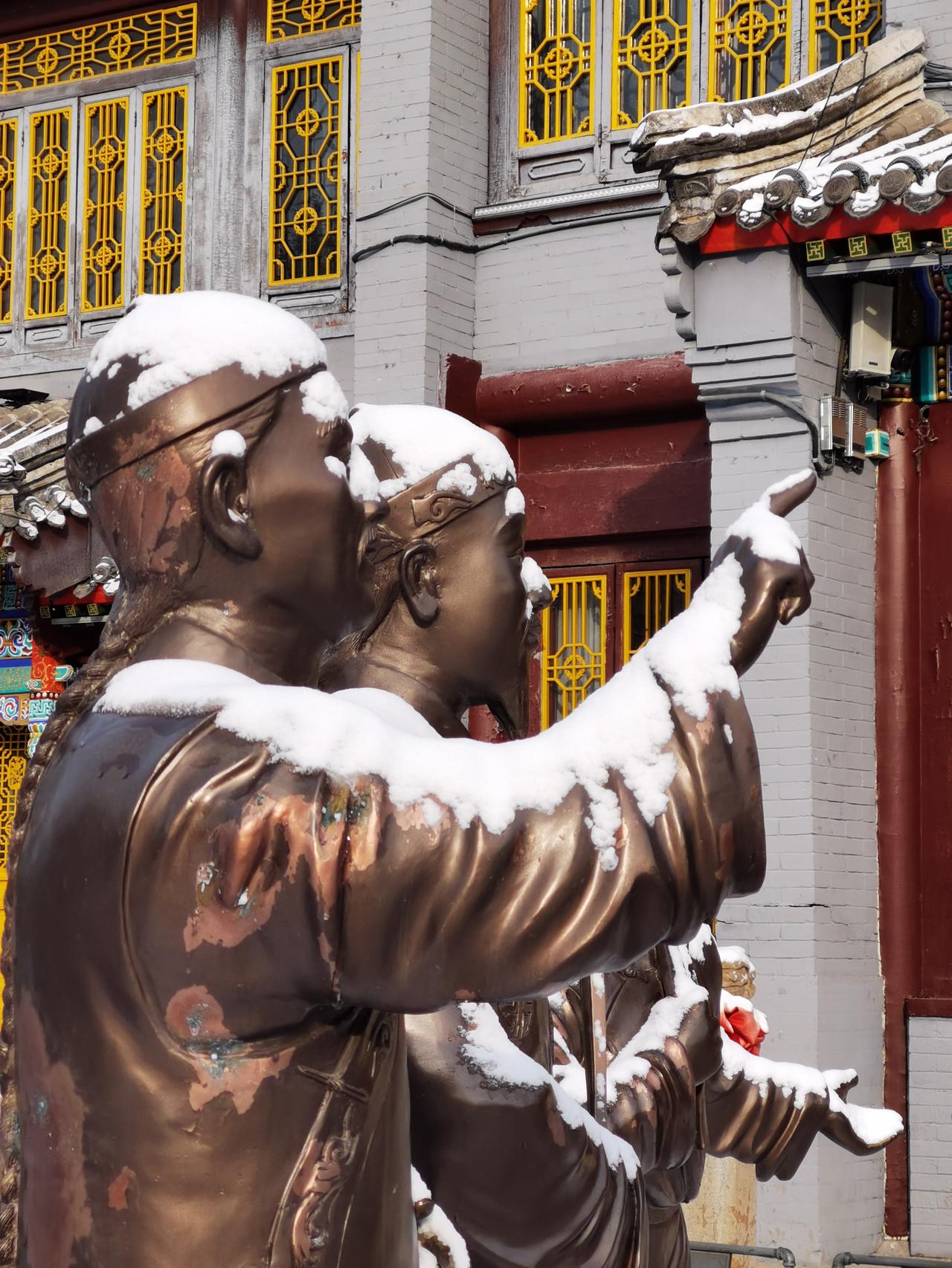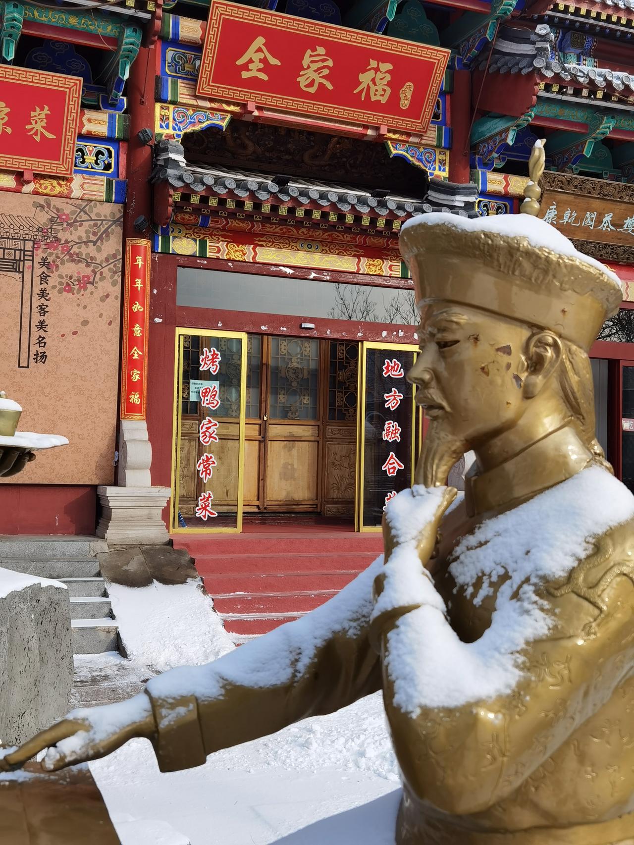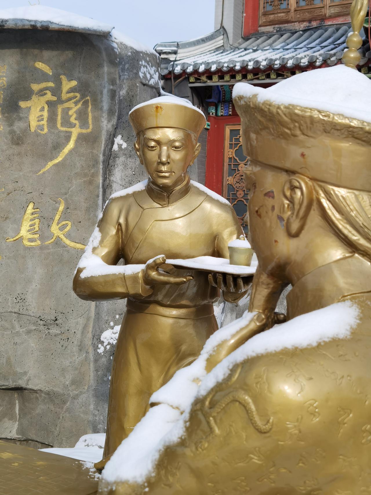 12月12日迎来2025年承德的第一场雪。 承德的街头走一走,感受一下初雪的惊喜。康熙帝骑马的铜像,两宫门商家的雕塑,山庄影壁墙的红灯,和雪产生关联后 ,承德就变成了热河。