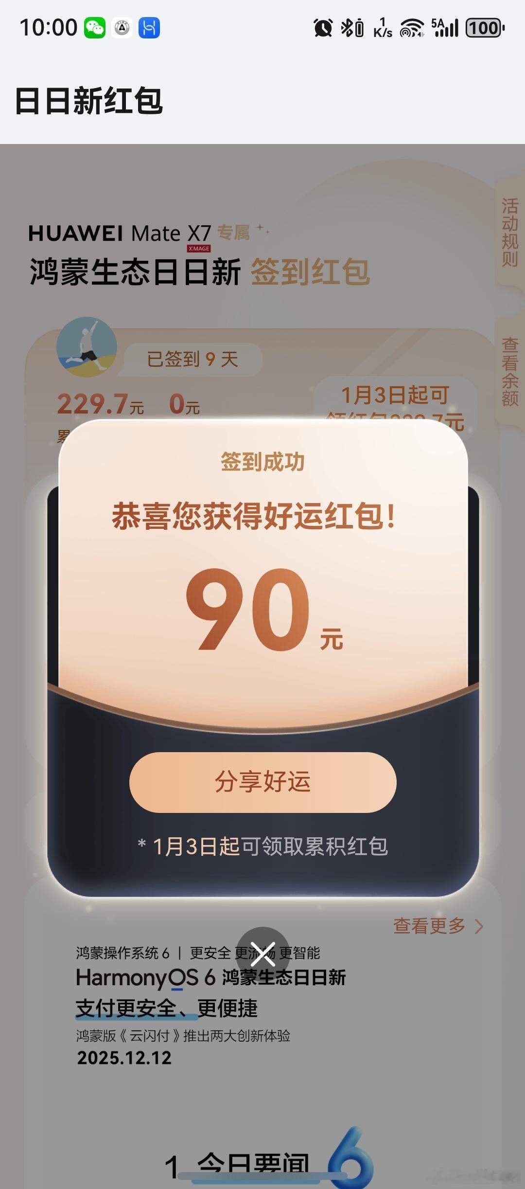 整点领取鸿蒙有礼的红包,好大啊!!!!