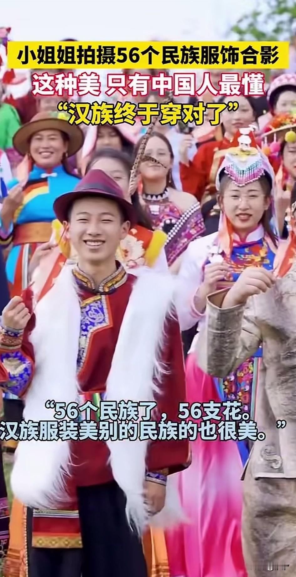 小姐姐拍摄56个民族的服饰合影, 汉族终于找回了自己的服饰文化, 在各族大家庭的合照里, 终于不再是T恤衫,牛仔裤了, 而是纵观霞帔, 一群人变装传统民族服饰, 还真是有趣极了, 不同的民族都有自己的代表服饰, 汉族也不例外, 尤其最近的明制汉服, 相当的好看, 论团结还是我大中华56个民族, 我们永远生活在祖国的怀抱, 56个民族,56朵花, 汉语服饰美? 别的民族服饰也很美, 这种美只有中国人懂, 大家觉得这样的民族合照美吗? 传统服饰 民族服饰 56个民族图鉴 民族风穿搭照 民族大合照 民族服饰图鉴 民族服饰自拍 民族风照
