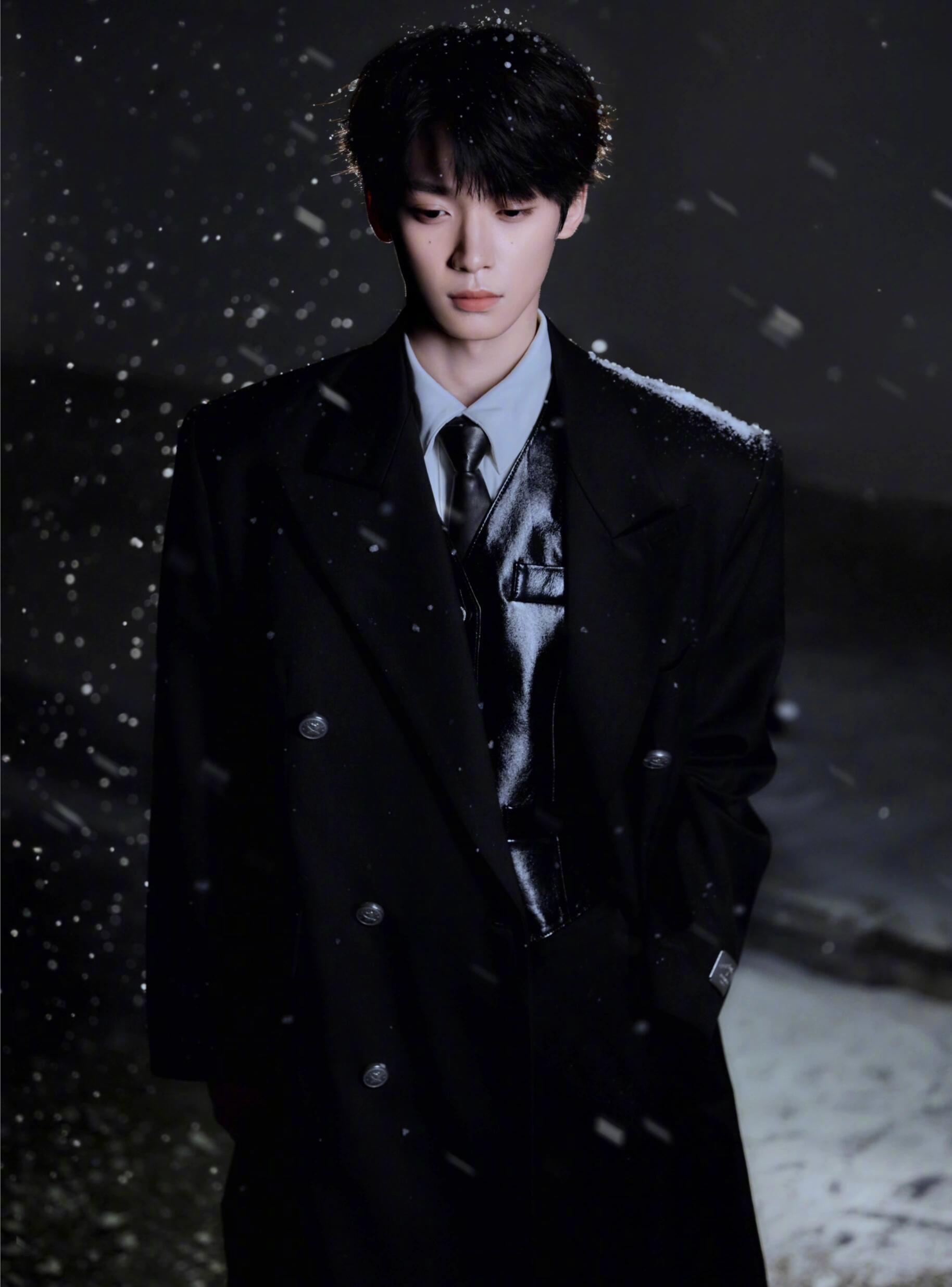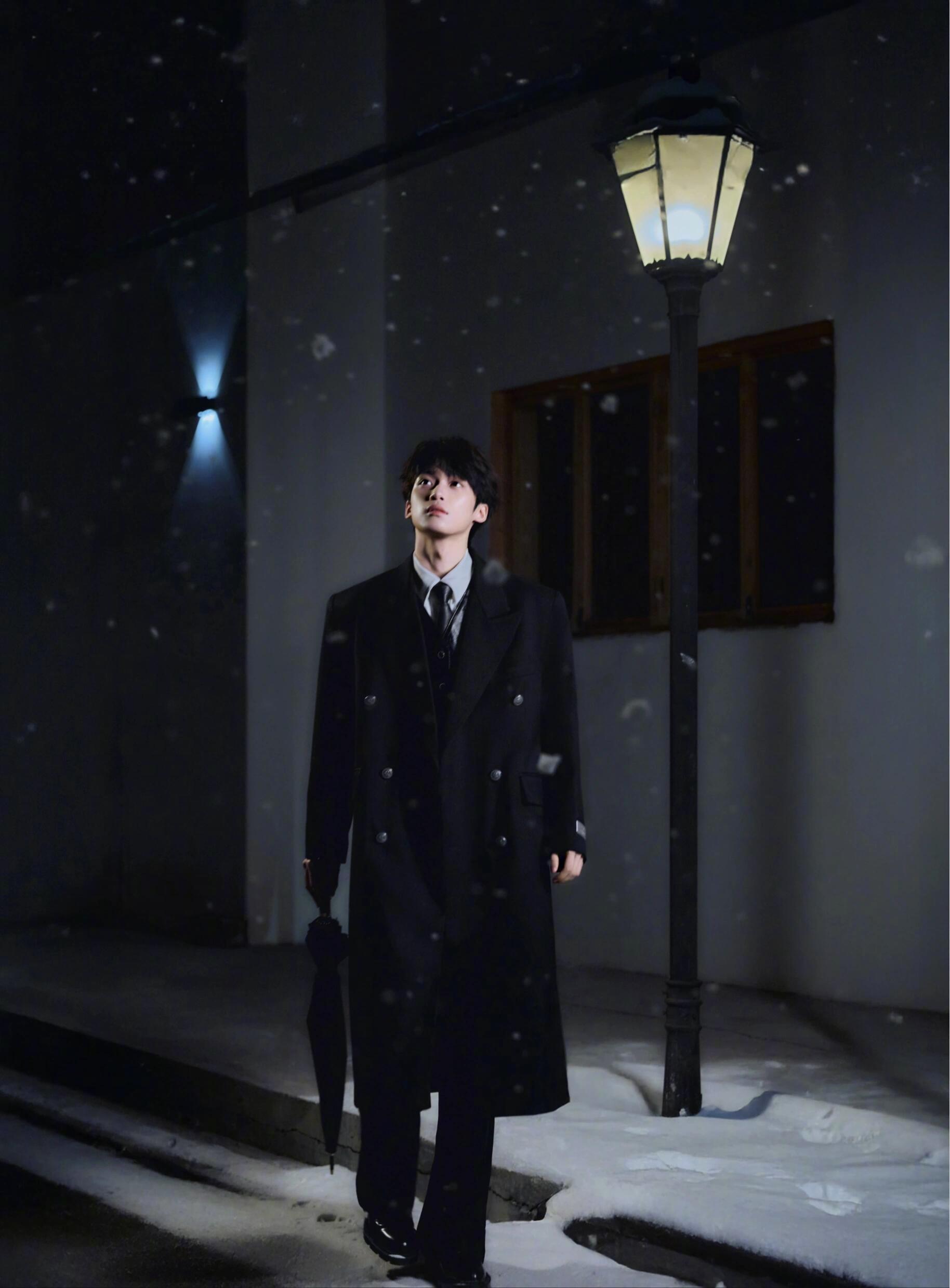 梓渝和初雪一起降临梓渝和初雪一起来了,大片完全是韩剧男主,身着FACEONLAB黑色长款大衣,内搭简约白衬衫,手持黑伞与初雪合拍。既有破碎感又饱含故事色彩,氛围感直接拉满