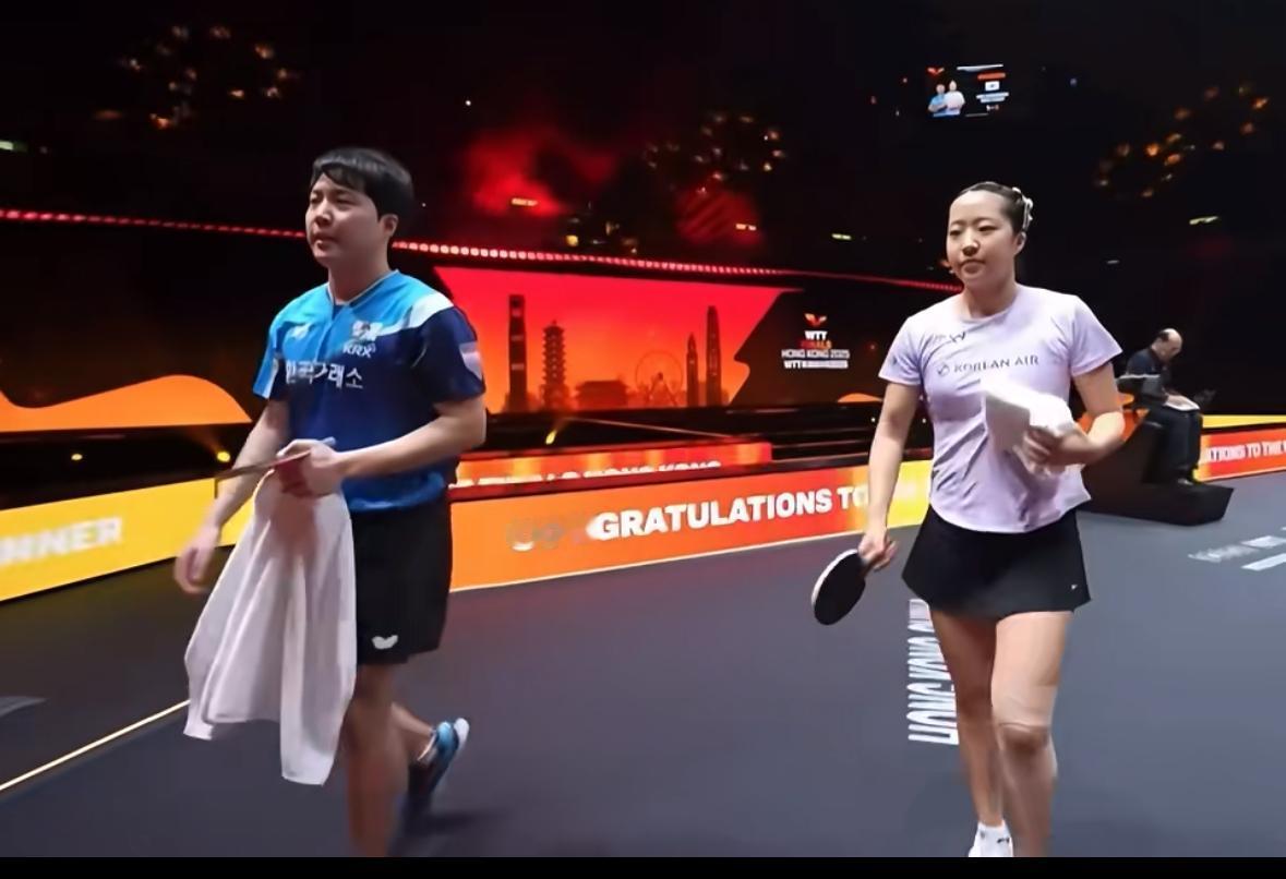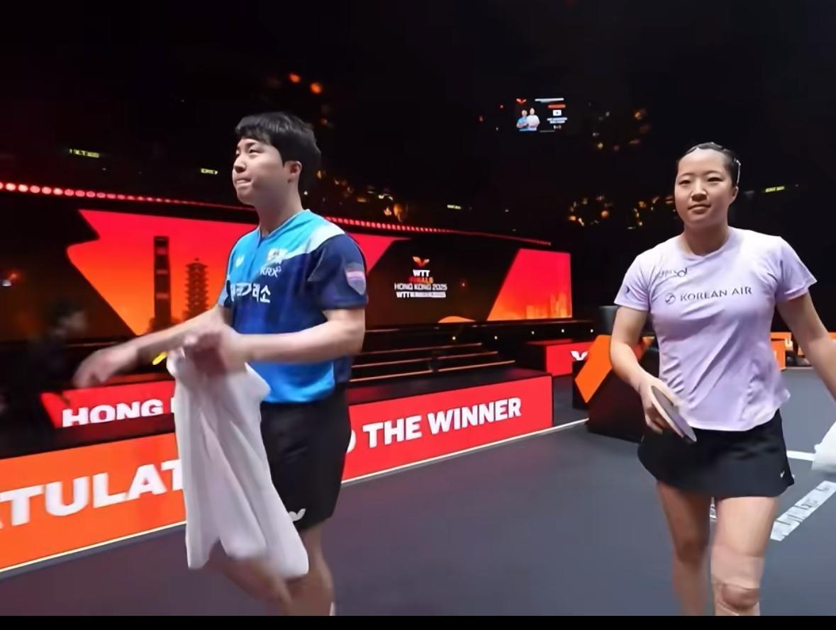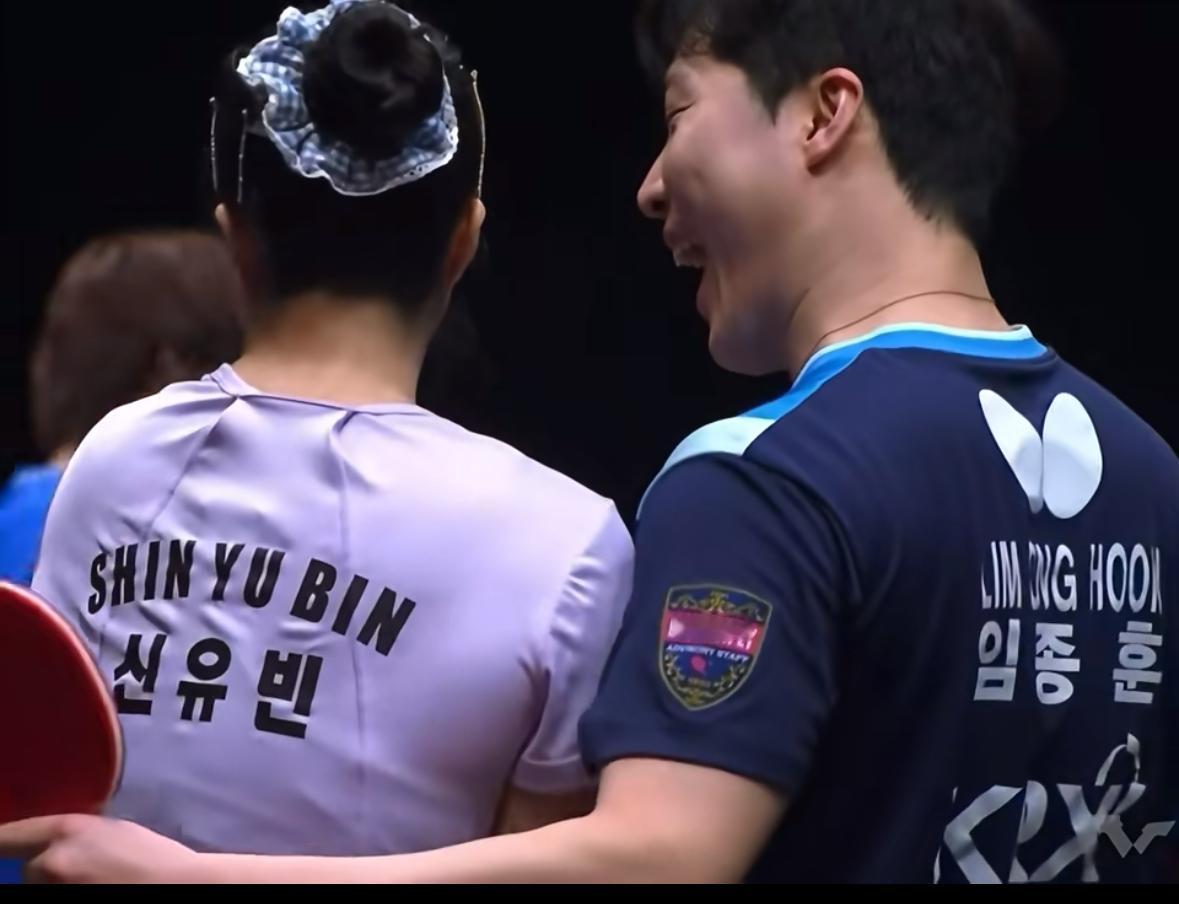 申裕斌走路一瘸一拐——林钟勋大婚后人更精神 12月13日, WTT香港总决赛,混双半决赛, 林钟勋/申裕斌3:1林诗栋/蒯曼 晋级决赛! 赛后,林钟勋/申裕斌拥抱 庆祝胜利! 奥运铜牌在奥运周期 实打实的训练了, 要不然申裕斌腿伤了, 林钟勋大婚也没有好好训练, 巴黎周期真的没有弱队啊! 希望林钟勋/申裕斌进入决赛 已经完成任务, 决赛莎头对阵林钟勋/申裕斌加油!