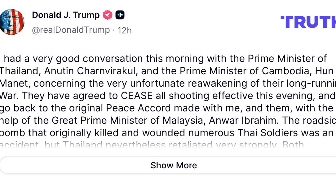【特朗普又被柬泰两国打脸,刚宣布停火,又打起来了】 日前泰国与柬埔寨爆发新一轮交火,这让当初的斡旋人特朗普丢尽了颜面,随后特朗普在一场集会上表示自己要给他们打电话,他还继续开吹:除了他,没有人敢说“打一通电话就能让他们停火”。 12月12日,特朗普打往东南亚的电话来了,事后特朗普在社交媒体上立刻宣布“喜讯”:他与两国进行了非常良好的通话,他们都同意在今晚停火。柬埔寨称泰军向柬境内投掷数枚炸弹 但奇怪的是,柬泰两国总理在各自的声明中并未提到停火,泰国总理甚至还表示:压根就没有停火。柬泰冲突 就在特朗普自吹自擂之际,柬泰交火仍在继续。泰国《民族报》表示:双方在达叻府的冲突持续了一整夜,泰军炮击柬军在戈公的炮兵阵地。泰国方面还获得情报,柬军部队与重型武器正接近边境,随后在黎明时分出动“战隼”战机空袭一座具战略意义的桥梁。据悉,这次“战隼”战机共炸了3次,初步消息显示桥梁已遭成功破坏,柬军重武器移动受阻。 柬埔寨方面表示,泰军在13日上午仍持续对争议边境地区发动攻击。泰国军方则反控柬埔寨以民用地点为目标并布设地雷。柬埔寨重机枪手向泰F16战机猛烈开火 泰国即将进入新一轮选举,现在停火很不现实,而且泰国军力远胜于柬埔寨,这次泰国军方不狠狠打一次恐怕誓不罢休。