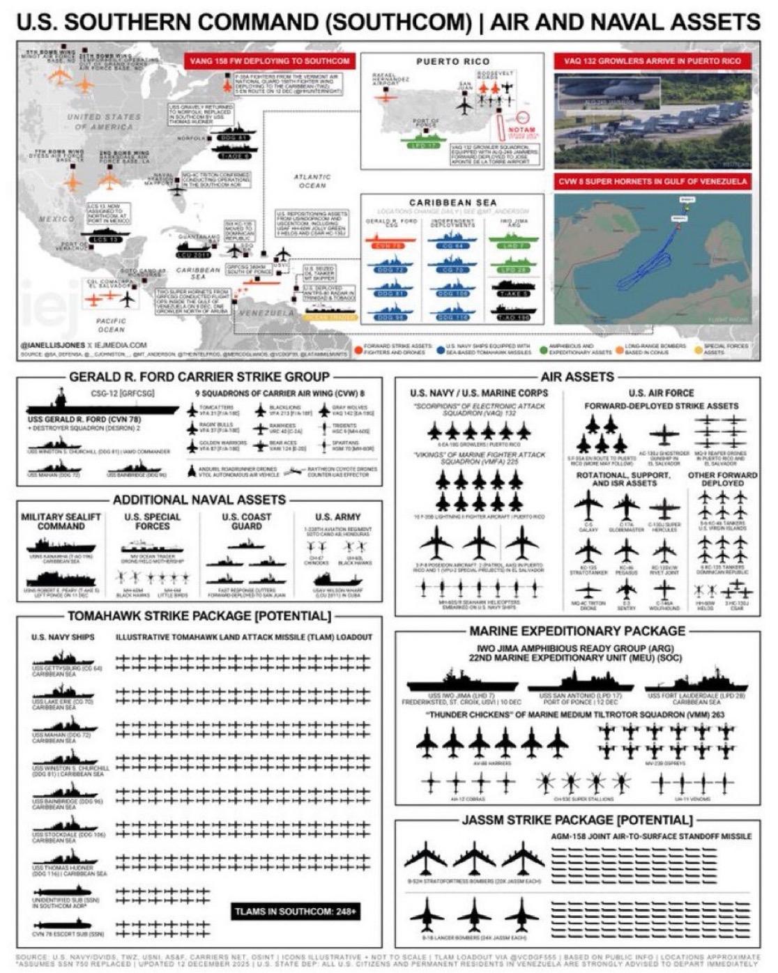 警报:美国战争部集结了二战以来规模最大的军事力量!!一支庞大的舰队,数个战斗机中队、无人机和轰炸机,以及数万名美军士兵,美国已做好战争准备!!