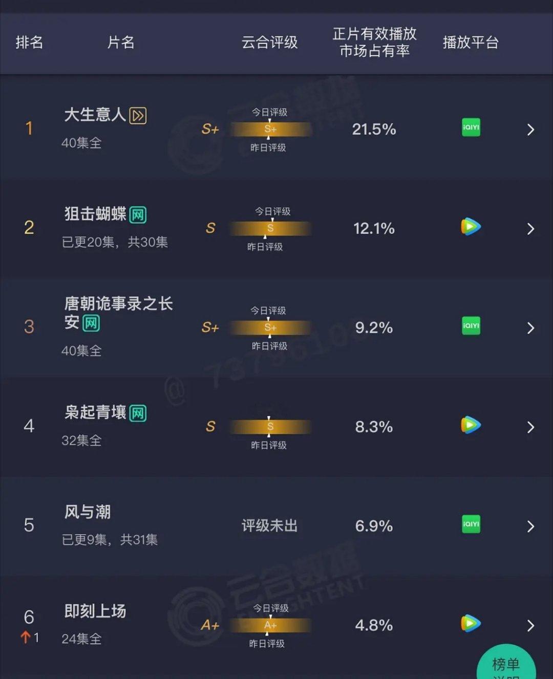 昨天的云合出来了