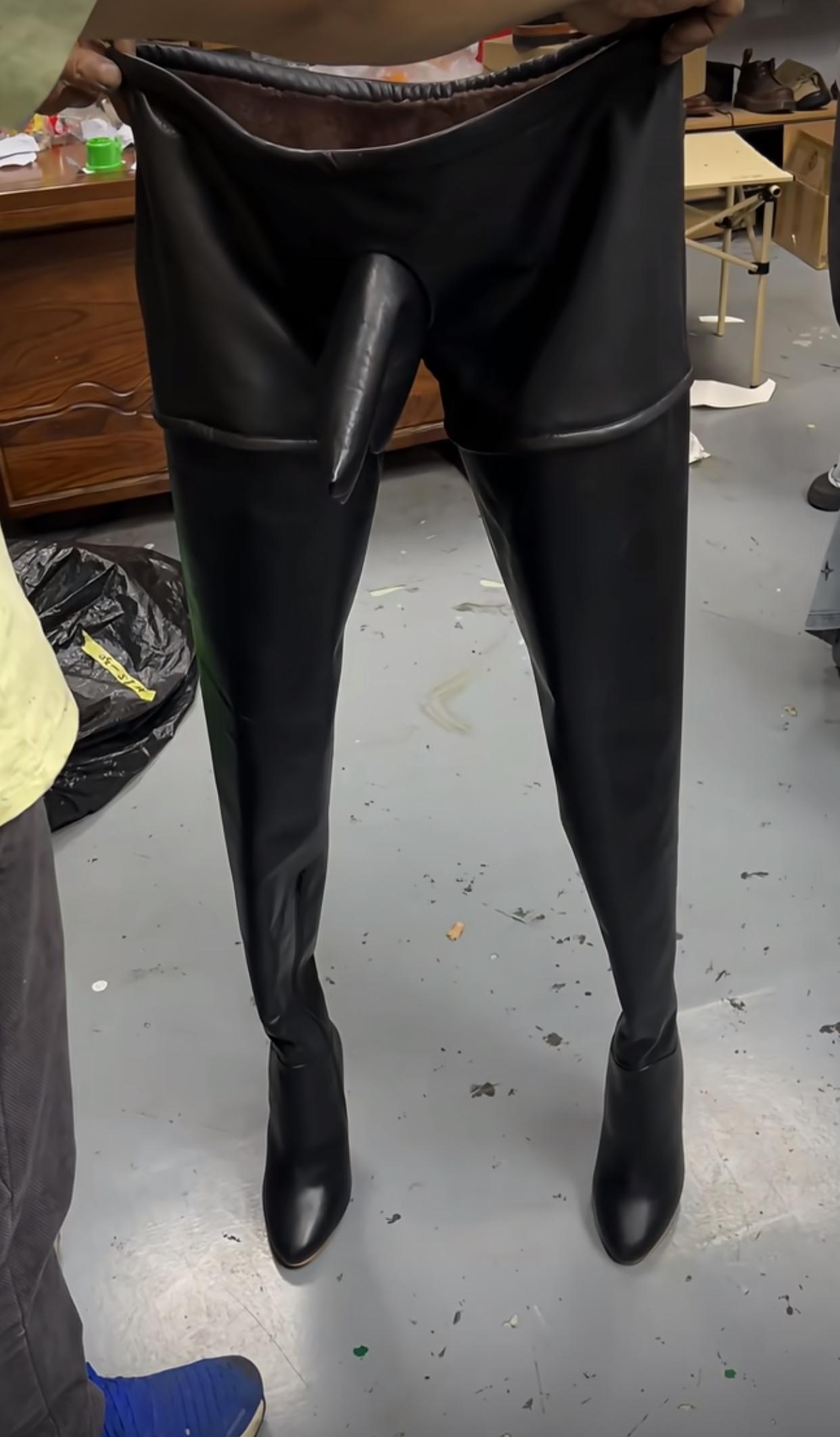 第一眼,就一条裤子,有啥稀奇的 第二眼,我的妈呀,这还是普通连体裤吗? 好家伙!这是要干嘛? 这连体裤长靴到底是男人穿还是女人穿? 你说它是男人穿的嘛,它又是高跟鞋 你说它是女人穿的了嘛,它前面又凸出一块 商家还怪贴心的呢,前面洞洞都有貂毛,一看就很保暖 这钱活该商家挣呀,这么奇葩的裤子他都愿意满足客户的需求 真就把客户奉为上帝呀