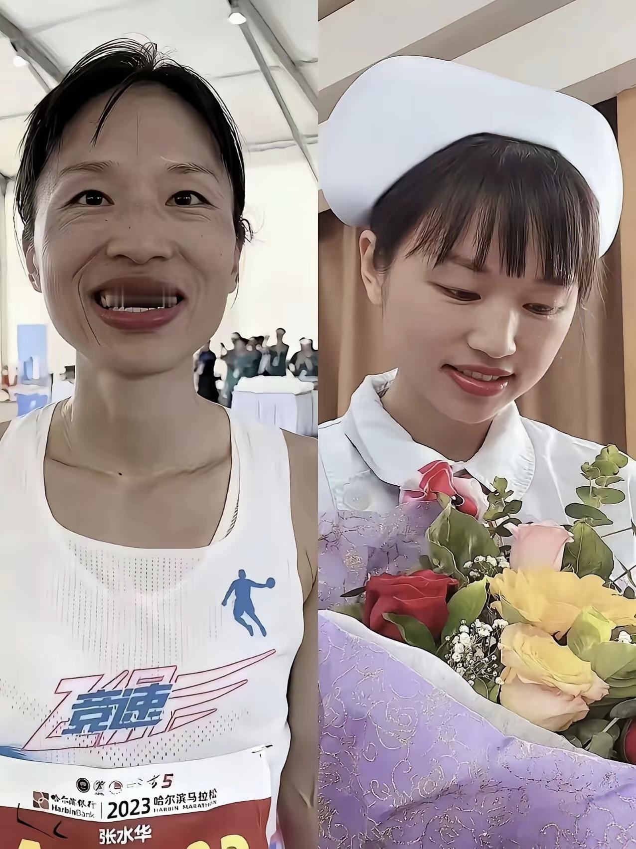 张水华跑马前后反差感拉满,太瘦真的会少点美感。左边跑马后的她,脸颊凹陷、皮肤也透着疲惫感,能看出长期高强度运动带来的消耗;右边穿护士服的她,脸上带着肉肉的元气感,满脸胶原蛋白,笑起来甜滋滋的,整个人温婉又有活力。 不是说运动不好,马拉松本身是超考验体能的运动,可过度减脂、透支身体换来的“瘦”,反而让原本的灵气都少了大半。 果然健康的体态才是最美的,不管是运动还是生活,都得把握好度呀~