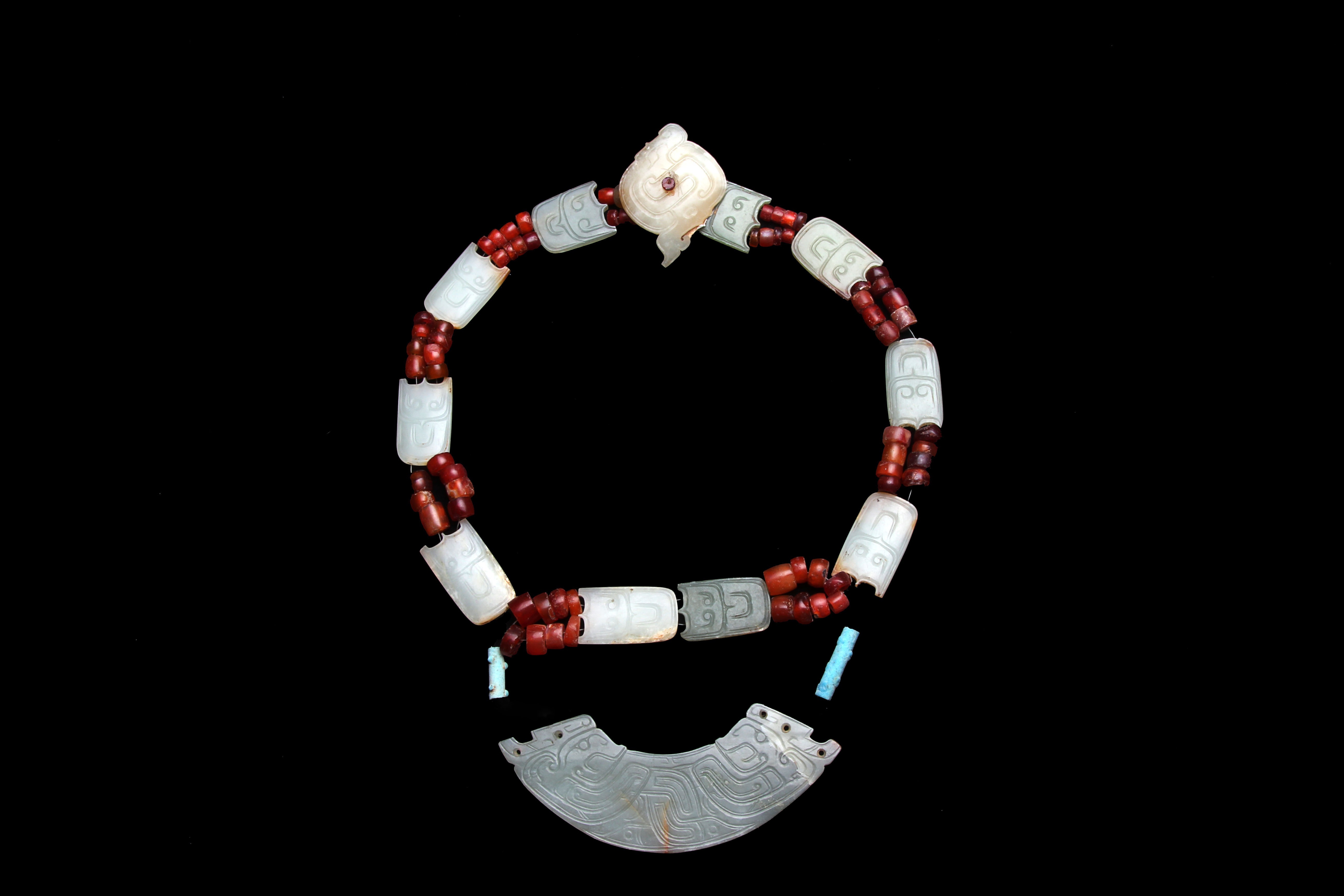 山西曲沃晋国博物馆藏春秋: 玉璜玛瑙珠等组成的玉项饰串