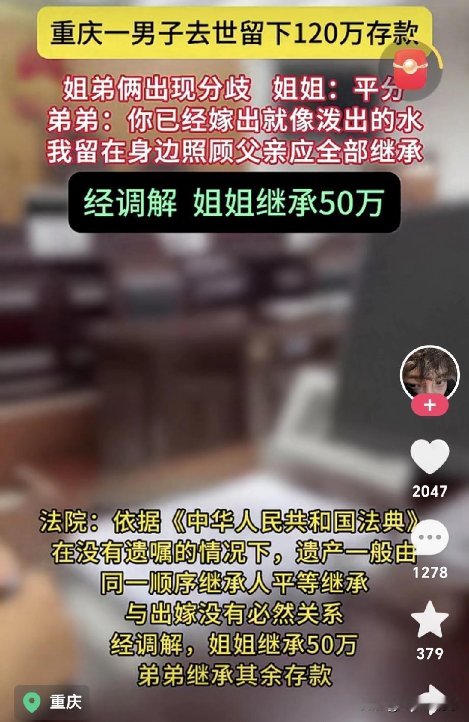 亲情在“钱”的面前真的一文不值吗?父母的遗产作为子女都应该有继承权,法律已经明确规定了,这位弟弟要独占他父亲的遗产,做的太不应该了。 虽然她姐姐已经嫁出去了,继承父母遗产没有任何直接关系,不会受到任何影响。为什么现在还有很多人认为女儿嫁出去了,就不应该继承遗产了呢。 嫁出去的女儿,可能不能继承父母的集体遗产,比如农村的田地、山地、包括宅基地这些都属于村集体的,对于嫁出去的女儿户口已经转出去了确实不能继承。 但是她父母的个人财产是可以继承的,除非生前立了遗嘱。