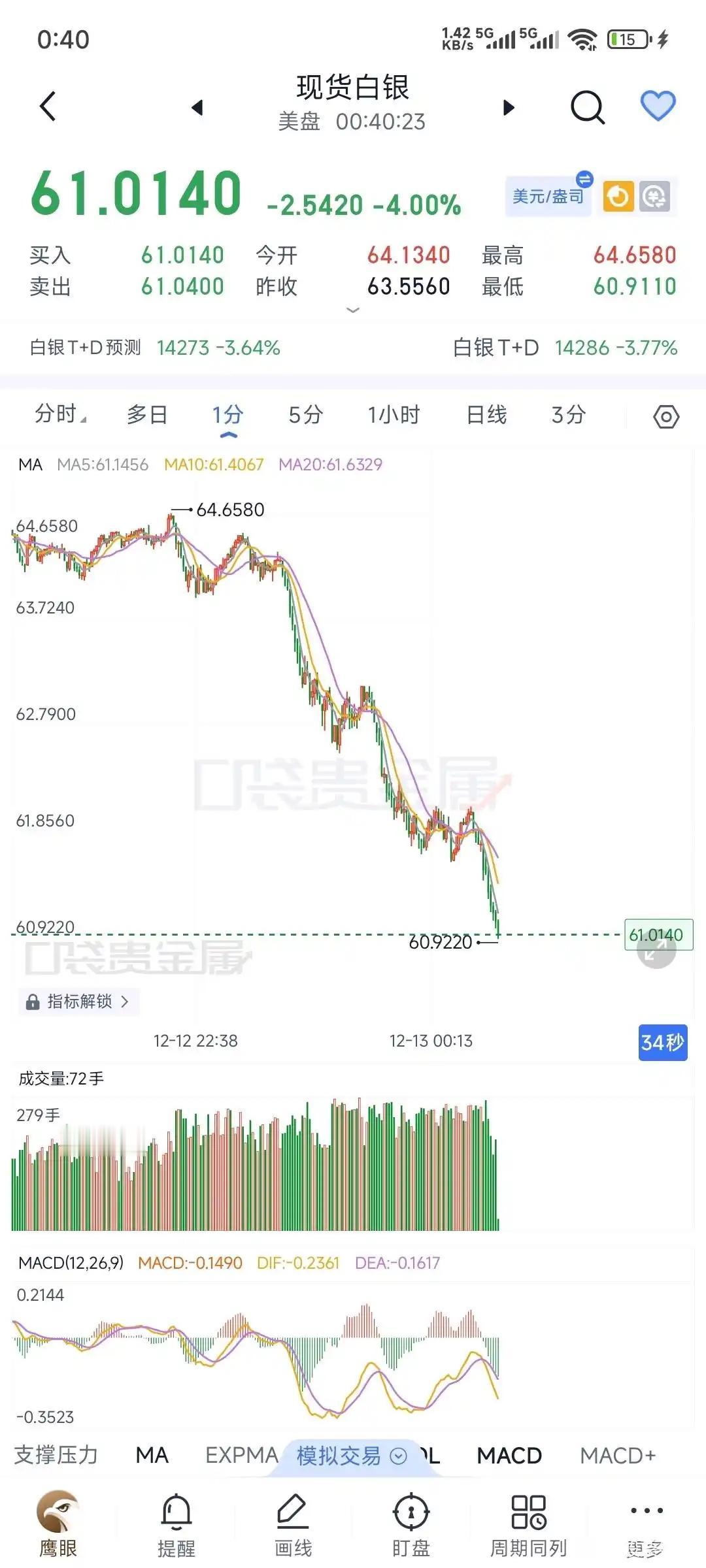 白银也玩A杀。 其实主要原因在黄金,黄金摸到前高解套了一大帮追高的,外加美股下跌卖白银去追加保证金,估计还要跌点。