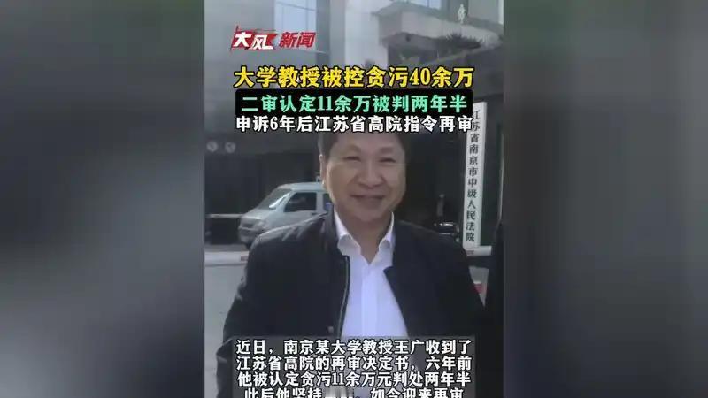6年申诉终迎曙光!大学教授贪污案再审 12月10日,南京的王广教授迎来了人生转折点——江苏省高级法院指令再审他的贪污案。此前,他已为洗刷冤屈奔波了6年。 王广是南京某知名大学教授,2010年借调主持校办企业改制,次年出任公司总经理。2016年,他被指控在2014年利用职务之便,通过虚开发票等手段贪污公款40余万元,用于个人购买股权和侵吞退资款。2018年,玄武区法院一审判其有期徒刑三年六个月,并处罚金20万元。王广不服上诉,二审法院改判其贪污11万余元,判处有期徒刑二年六个月,并处罚金15万元。 重获自由后,王广仍坚称自己无罪,拿着新证据不断申诉,却屡遭驳回。但他从未放弃,四处奔走维权。如今,江苏省高级法院经审查认为其申诉符合重新审判条件,指令南京中院再审。王广哽咽着说:“6年坚持,终于看到希望。”期待这场再审能还他一个公正的结果。