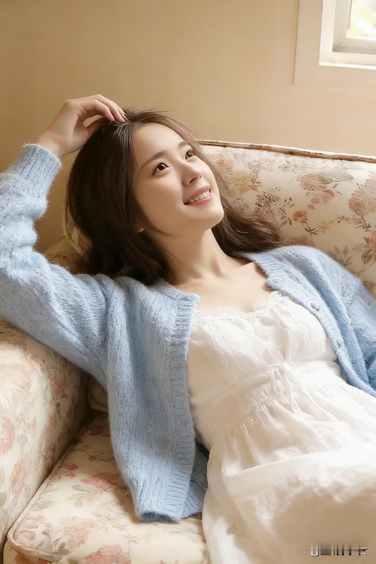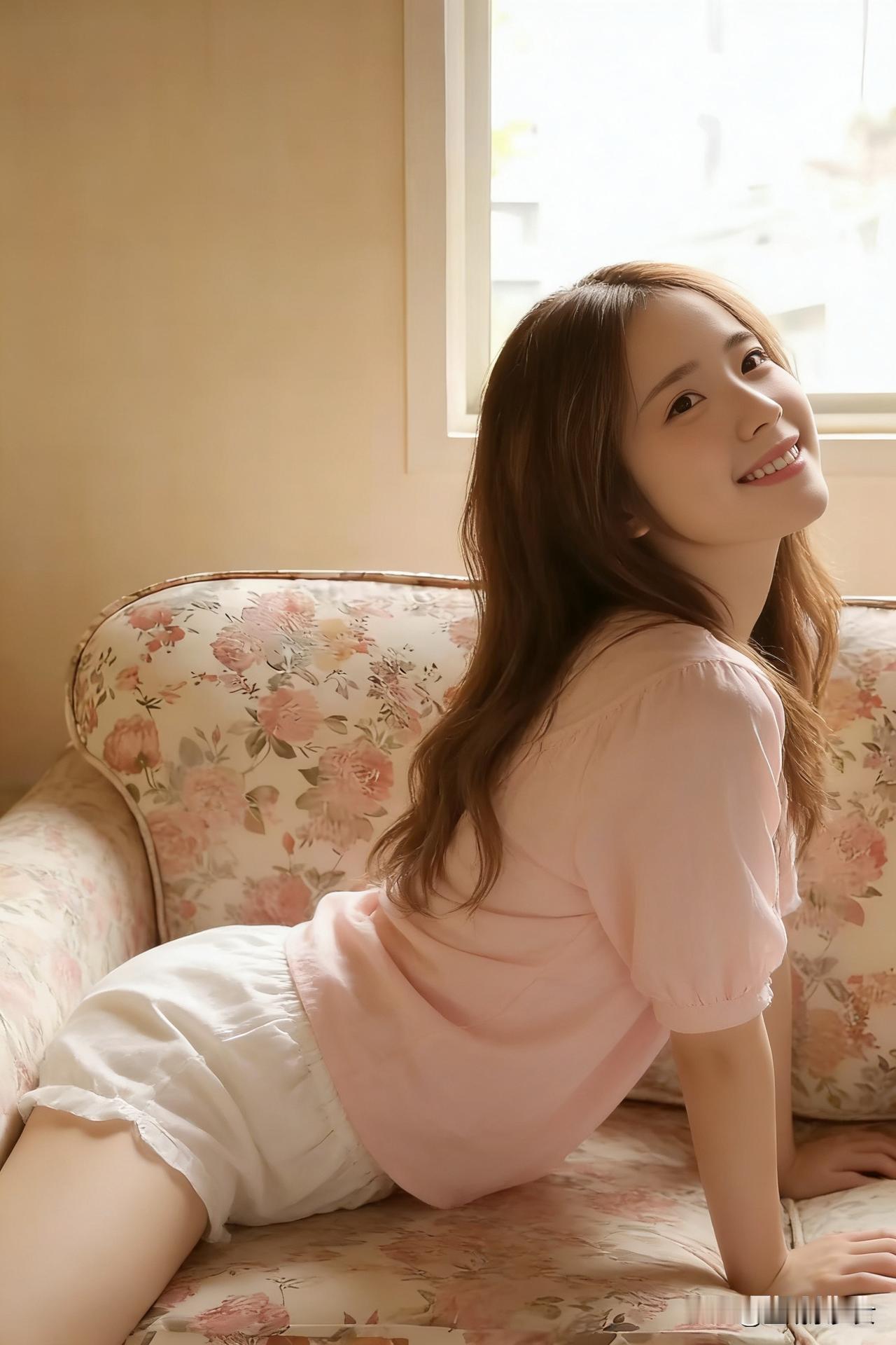 粉裙栖春光暖光淌在香槟色沙发的纹路里,她静坐时,粉色裙摆晕开一层软绵的云。