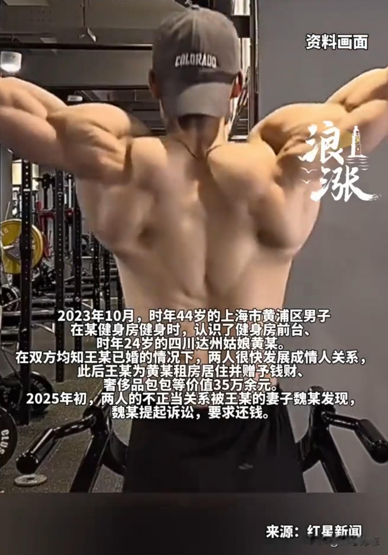 上海,44岁的已婚男子去健身房锻炼,认识了24岁的前台女子,没多久就发展成了情人关系,期间,男子一共给女子花了35万多,之后两人的关系被妻子发现了,妻子把女子告上法庭,要求返还46万。法院判了! 女子是健身房的前台,四川达州人,年轻漂亮,看着就有青春活力,男子一眼就动了心思,开始慢慢接触女子。 女子知道男子有妻子,有家庭,可男子舍得花钱献殷勤,女子架不住这种“大方”的追求,没过多久,两人就偷偷发展成了情人关系。 为了方便约会,男子还特意在外面给女子租了一套精装公寓,但他怕被妻子发现,每晚不管多晚都回自己家过夜,从不在出租屋留宿。 之后的13个月里,男子为了维持这段关系,花了不少钱。两人聊天记录里,女子一口一个“老公”喊着,男子也乐呵呵地应着,被甜言蜜语哄得心花怒放。 除了包揽女子的房租,男子还频繁给她转账,包包、手镯、鞋子说买就给她买,从不犹豫,一共给她花了356271元。 就这么偷偷摸摸过了一年多,2025年初,男子的妻子核对家庭银行流水时,发现了好多笔大额不明支出,顺着转账记录一查,很快发现了丈夫和女子的关系。 妻子没和丈夫吵架,反而很冷静,默默把所有的证据都收集好,2025年3月,直接把丈夫和女子一起告上了法院,说丈夫花的钱属于夫妻共同财,要求女子返还467913元。 开庭时,男子也同意了妻子的说法,承认自己擅自花夫妻共同财产养情人。而女子既没有出庭,也没提交任何书面答辩意见。 2025年7月29日,一审判决,要求女子把356241元还给妻子,还要支付这笔钱的相应利息。 女子陪着男子混了13个月,不仅没捞到半点好处,最后还得自己掏腰包付诉讼费,竹篮打水一场空,纯属自找苦吃。 而男子呢,好好的家也散了,花出去的35万也全打了水漂,落得个人财两空的下场。