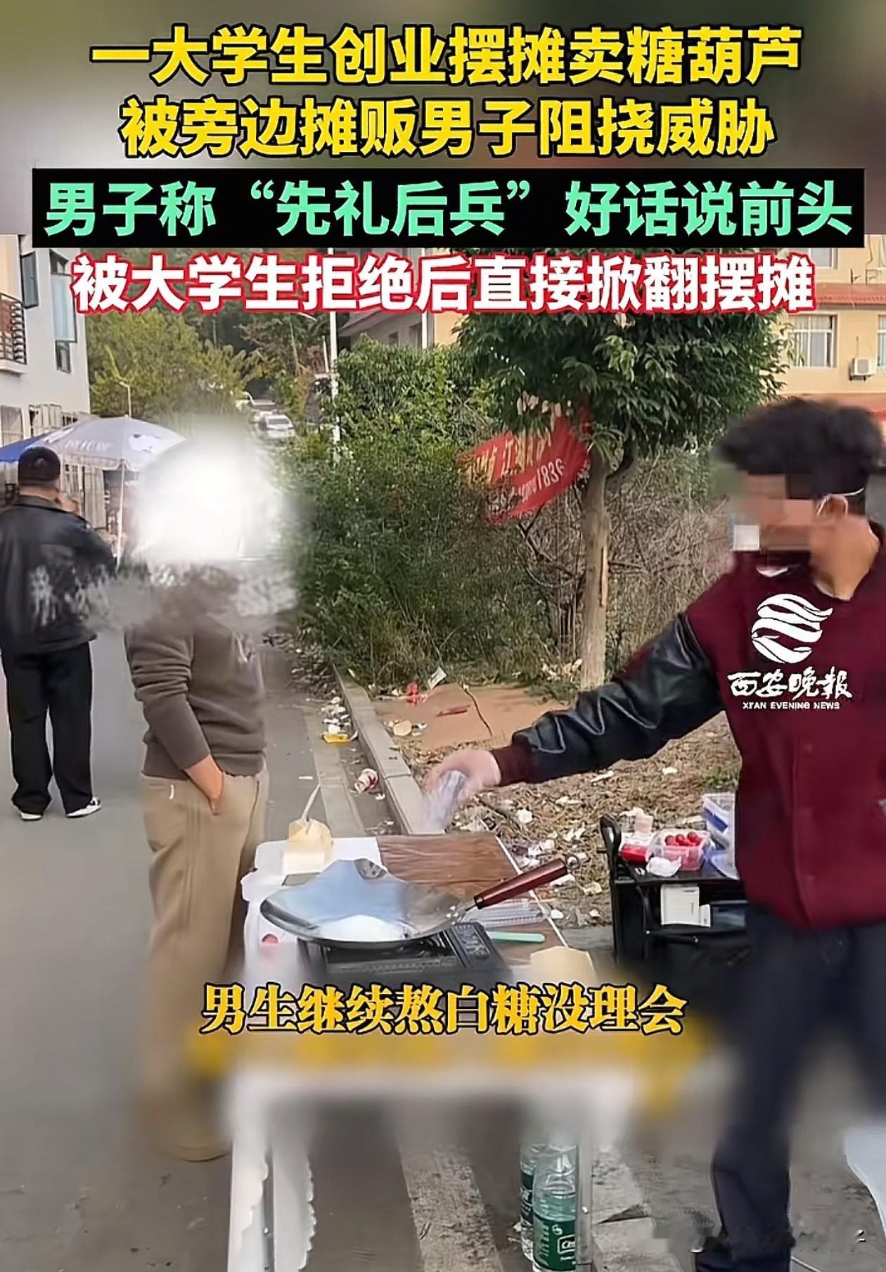 欺负大学生算什么本事!四川,一大学生利用业余时间摆摊卖糖葫芦,没想到刚把摊位支好