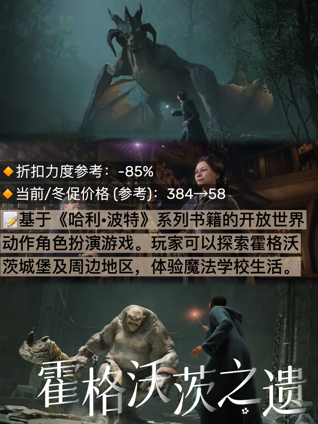 🔸📝基于《哈利·波特》系列的开放世界动作角色扮演游戏。玩家可以探索霍格沃茨城堡及周边地区,体验魔法学校生活。