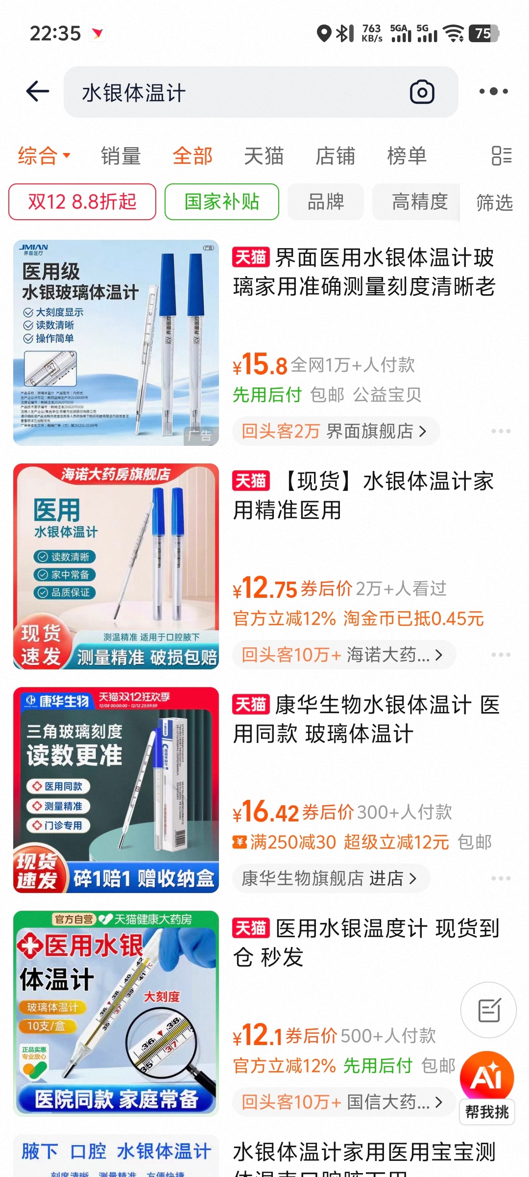 水银体温计线上99元一支我搜了搜几个平台,没那么夸张呀!谁又在炒作