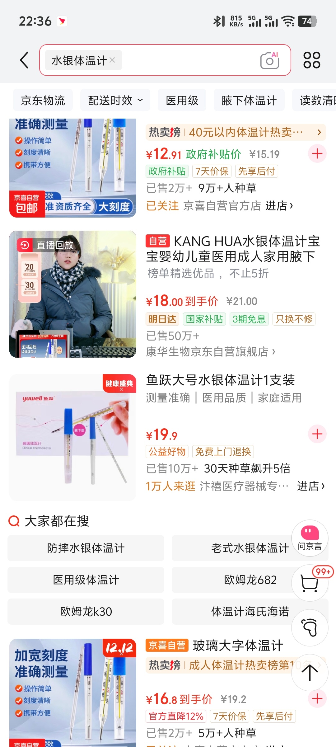 水银体温计线上99元一支 我搜了搜几个平台,没那么夸张呀!谁又在炒作
