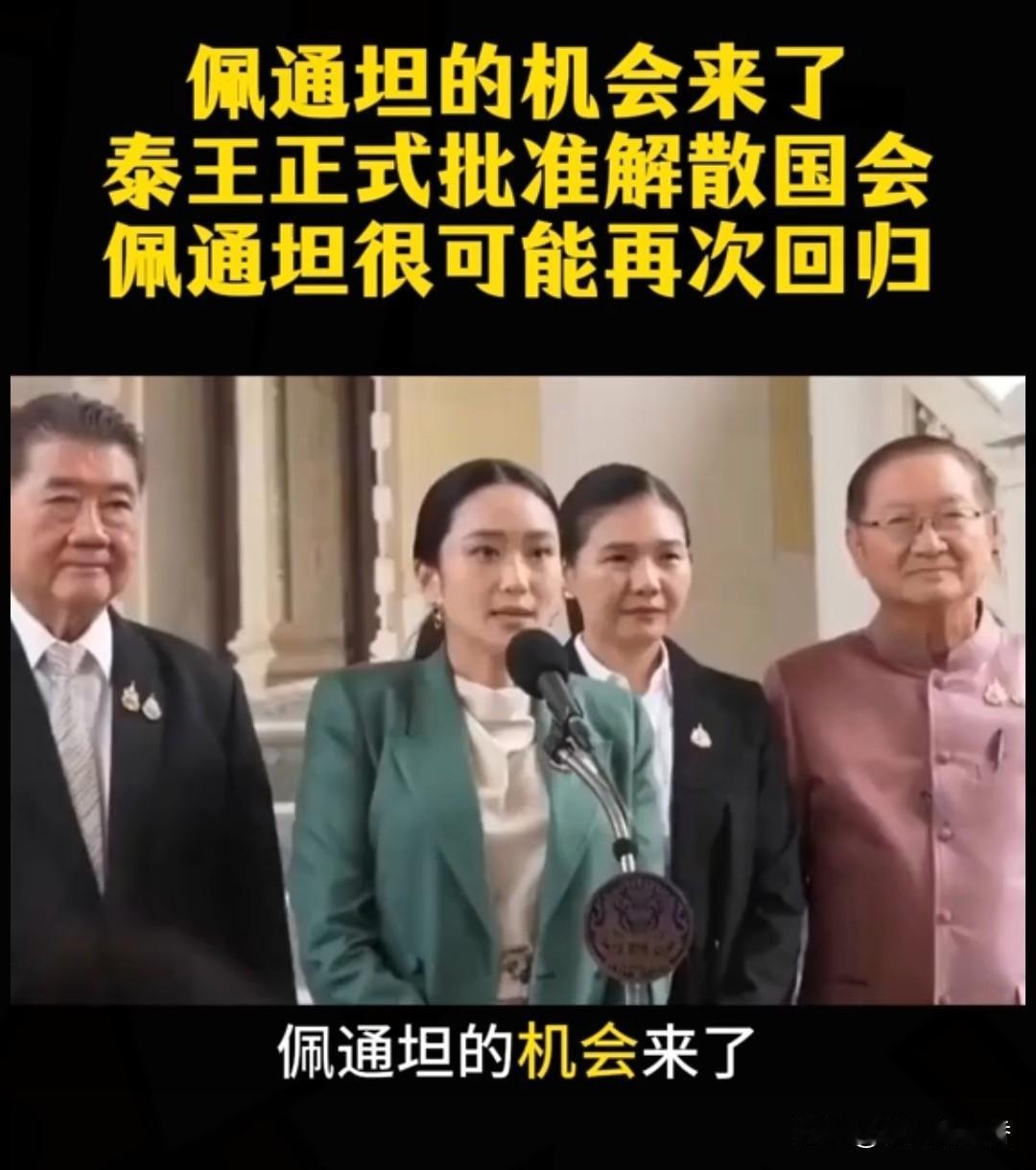 泰王重磅官宣! 国会解散45天内大选, 佩通坦迎翻盘良机,能否逆袭…? 突发!泰国迎来关键政治变动,泰王已正式批准解散国会,按照法律规定,新大选将在45至60天内举行,政坛格局即将重塑! 此次大选对卸任总理佩通坦而言,无疑是重返权力中心的绝佳机会。即便她已不再担任党首,可泰国法律并未规定参选需以党首身份,只要获得政党提名,仍能参与总理角逐,年轻有为的她依旧是热门人选之一。 网民热评:“佩通坦终于等到机会了,期待她能逆风翻盘”“泰国大选变数太大,谁能胜出还真不好说”。 你觉得佩通坦能抓住此次大选机会,成功重返巅峰吗?泰国新政坛格局会如何变化?欢迎评论区留言讨论!佩通坦