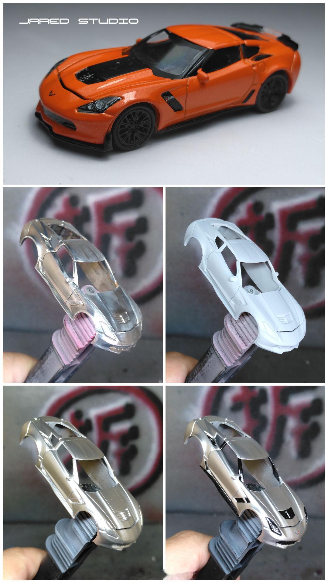 完工一辆Auto World的克尔维特Z06改色,好像还是第一次大改AW的车,铸造和装配品控实在是一言难尽,有非常大的上升空间。按客人要求改亮光银色,手绘车灯,基础细化。