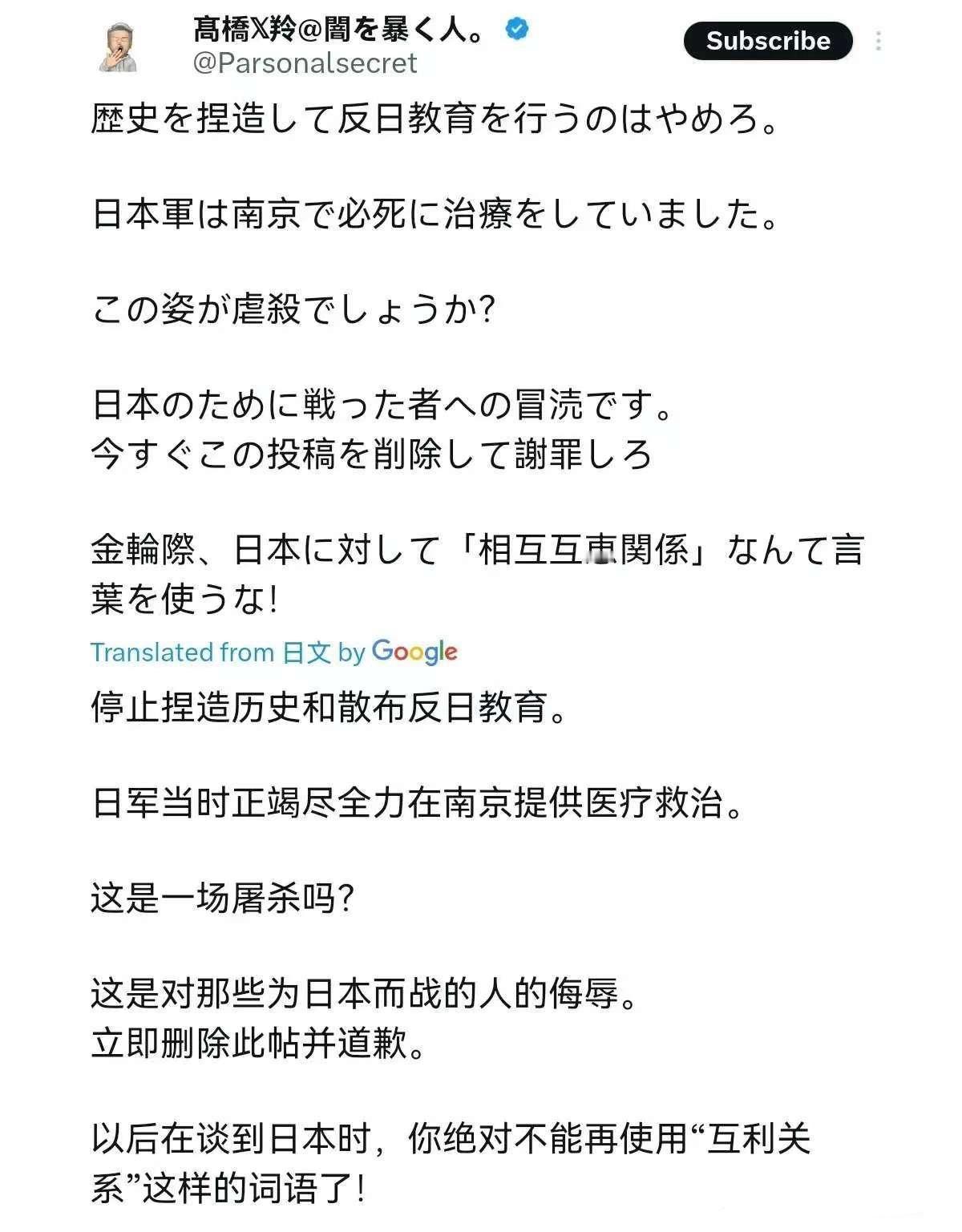 倒反天罡! 在中方举办南京大屠杀公祭之际,日本政客居然口出狂言,要求中方道歉!在12月13日,日本右翼政客高桥羚阁公然表示,请停止“捏造”历史,停止开展反日教育! 见过无耻的,没见过这么颠倒黑白、厚颜无耻的!12月13日是什么日子?是30多万手无寸铁的中国平民和战俘,在南京城里惨遭日军屠戮的国殇之日,是中华民族刻在骨子里、流在血液里的伤痛记忆。每一年的这一天,我们举行公祭,不是为了延续仇恨,而是为了铭记历史、缅怀先烈,更是为了警示后人和平来之不易。可这位日本右翼政客倒好,在全世界都在缅怀遇难者的肃穆时刻,跳出来否认历史、颠倒黑白,甚至反过来要求中方道歉,这番操作简直刷新了人类良知的底线,说一句“倒反天罡”都算是轻的。 高桥羚阁嘴里的“捏造历史”,纯属睁着眼睛说瞎话。南京大屠杀的真相,从来不是中方单方面的陈述,而是被大量史料、文物和证人证言牢牢钉在历史耻辱柱上的铁案。远东国际军事法庭的判决书里,清晰记录着日军的暴行;南京大屠杀遇难同胞纪念馆里,一件件沾满血泪的遗物、一张张触目惊心的照片,都是日军犯下反人类罪行的铁证;还有那些幸存的老人,用一辈子的时间回忆痛苦经历,就是为了不让历史被篡改。日本右翼政客无视这些铁一般的事实,执意否认历史,本质上就是不敢面对自己国家犯下的滔天罪行,是对遇难者的亵渎,更是对人类文明的践踏。 所谓“停止反日教育”的论调,更是荒谬到了极点。我们的历史教育,从来不是为了培养仇恨,而是为了还原历史真相,让下一代知道先辈们经历过怎样的苦难,明白落后就要挨打的道理。反观日本,这些年一直在教科书里大做文章,肆意删减、歪曲侵略历史,把侵略说成“解放”,把屠杀美化成“必要措施”,这种自欺欺人的教育,才是真正在培养极端思想、煽动对立。自己一边系统性地歪曲历史,一边还对中方的历史教育指手画脚,这种双重标准,暴露的不仅是心虚,更是骨子里的傲慢和无耻。 更让人愤怒的是,高桥羚阁的这番狂言,绝非个人一时兴起的胡言乱语,而是日本右翼势力近年来不断抬头、否认侵略历史的一个缩影。这些年,日本右翼政客在历史问题上的小动作不断,参拜靖国神社、修改历史教科书、否认慰安妇问题,一步步挑战历史正义和人类良知。他们之所以敢如此肆无忌惮,一方面是因为日本国内对战争罪行的反思始终不够彻底,另一方面也是抱着侥幸心理,想通过不断否认历史,淡化自己的罪责。可他们忘了,历史不是任人打扮的小姑娘,那些血淋淋的事实,早已深深烙印在世界人民的心里,不是几句谎言就能抹去的。 忘记历史就意味着背叛,否认罪责就是重蹈覆辙。日本右翼政客的这番操作,不仅不会让世界忘记他们的罪行,反而会让更多人看清其真实面目,更加坚定我们铭记历史的决心。我们从来不怕有人否认历史,因为真相永远站在正义这边。中方的历史教育只会更加坚定,公祭活动也会一直举行下去,直到所有侵略罪行都得到彻底承认和忏悔。而像高桥羚阁这样的右翼政客,终将被钉在历史的耻辱柱上,被全世界爱好和平的人们所唾弃。 各位读者你们怎么看?欢迎在评论区讨论。