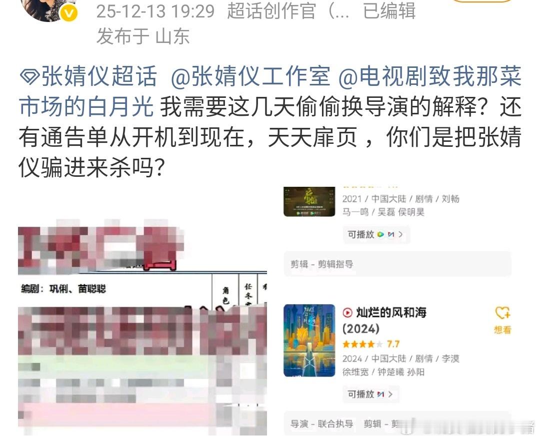 张婧仪粉丝维权,要求剧组整改女主妆造,居然已经连续四天换导演了,天天扉页,真的好惨