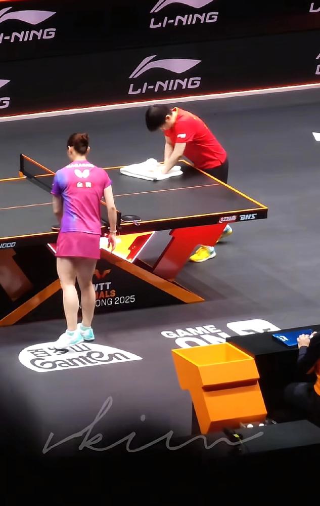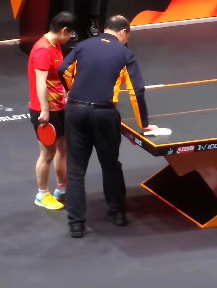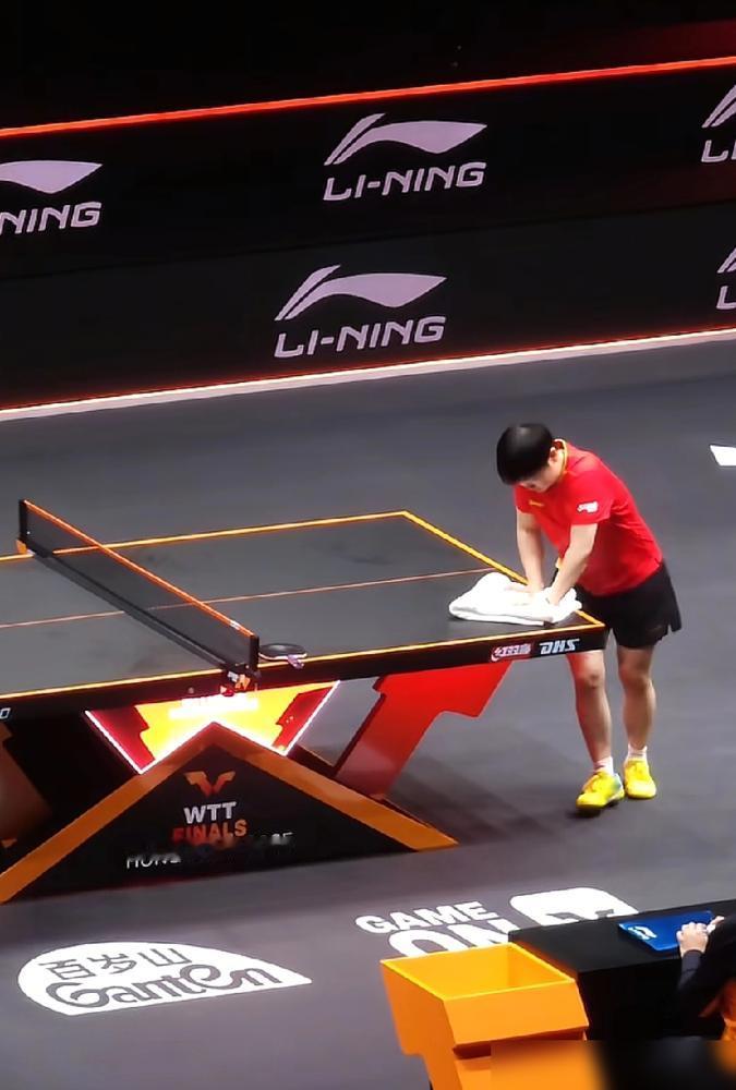 不知这个裁判有没有社死现场! 莎莎请裁判帮忙把桌子,本想自己擦的,裁判拒绝了,但是他走马观花得了擦一遍后,莎莎觉得没擦干净,又拿自己擦汗的毛巾擦了一遍。 孙颖莎安安静静站在那里,眼神却像最精准的扫描仪,把球台上的每一寸水渍都看得清清楚楚。 裁判上前擦拭,那份好意莎莎心领了,可效果嘛,显然没达到她心中那条极高的标准线。 于是,我们看到了极具反差萌的一幕,裁判刚转身,小姑娘立马掏出自己擦汗的毛巾,双手用力,蹭得那叫一个一丝不苟,连对手长崎美柚的那半张球台都照顾得妥妥帖帖。 这哪里是嫌弃,这分明是刻在顶尖运动员骨子里的、对比赛环境近乎苛刻的负责。 说起来,这已经是连续第二天,这位裁判成为“焦点”了。 前一天,小将林诗栋就曾觉得他翻记分牌的手速慢了半拍。 到了莎莎这儿,擦桌子的干净程度又成了新课题。 难怪有网友能脑补出裁判的内心独白,“昨天监督我翻分,今天监督我擦桌,这位小祖宗可真不好‘伺候’。 ”但这“不好伺候”背后,折射的正是中国乒乓球队为何能长盛不衰的密码,对细节的执着。 球台上微小的汗渍或灰尘,都可能改变球的旋转和轨迹,进而影响整个战局。 莎莎的“不放心”,本质上是对胜利的绝对尊重。 这种对细节的掌控欲,莎莎可是“惯犯”了。 还记得不久前在印度的比赛么? 场地天花板滴滴答答漏水,活脱脱一场“室内小雨”。 裁判安排工作人员清理,莎莎一边擦着汗,一边目不转睛地盯着地面,那股认真的劲头,被大家笑称为“莎监工”。 直到确认万无一失,比赛才得以开始。 从监督擦地到亲自擦桌,孙颖莎用行动定义了何为职业素养。 它不在于口号,而体现在这些看似微不足道、却至关重要的环节里。 反观这场比赛的保障工作,确实有些让人啼笑皆非。 裁判擦球台走马观花,开球时甚至接连失误,用解说员的话说,“开局几分,裁判已经丢了四个球”。 这一连串的“小插曲”,组合成一幅略显荒诞的图景。 我们当然可以将其归咎于所谓的“地方特色”,一笑了之。 但往深里想,这其实是对运动员努力的一种损耗。 顶尖选手们日复一日锤炼出的精妙手感,不该被场外因素轻易干扰。 网友们的调侃充满了善意,“莎莎好可爱呀”、“这也太‘阿三’了吧”。 笑声背后,是一种心疼和理解。 运动员们远征海外,面临的不仅是球台对面的对手,还有各种意想不到的挑战。 莎莎的两次“监督”,看似小题大做,实则是为自己、也为比赛公平筑起一道防线。 她不是在为难谁,而是在守护这项运动的纯粹性。 那份专注,让人动容。 所以,别只觉得这一幕好玩。 孙颖莎双手用力擦拭球台的每一个动作,都在无声地诉说,冠军,就是这样炼成的。 她们的成功,从来不只是靠天赋和汗水,更靠这种对每一个细节锱铢必较、亲手把握的踏实感。 裁判或许有一瞬间的尴尬,但真正值得关注的,是这位世界冠军身上闪耀的、超越胜负的敬业光芒。 这束光,照亮的不仅是球台,更是体育精神的本质。
