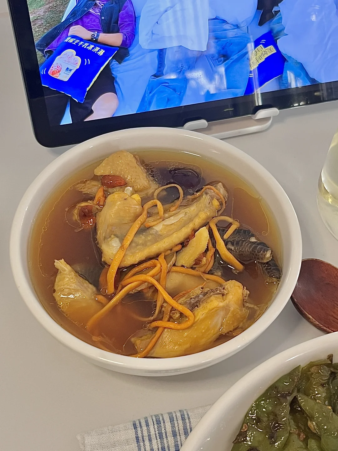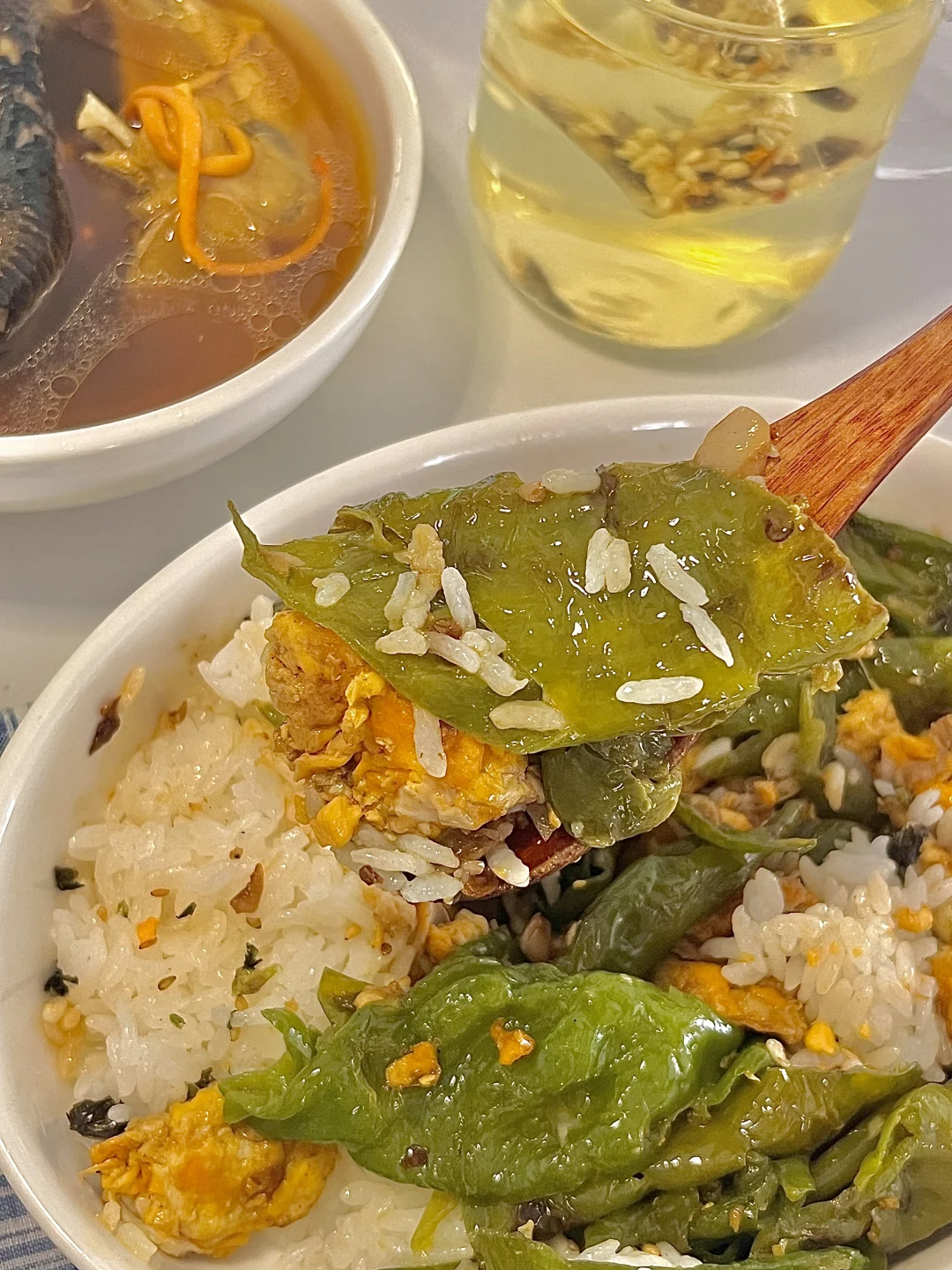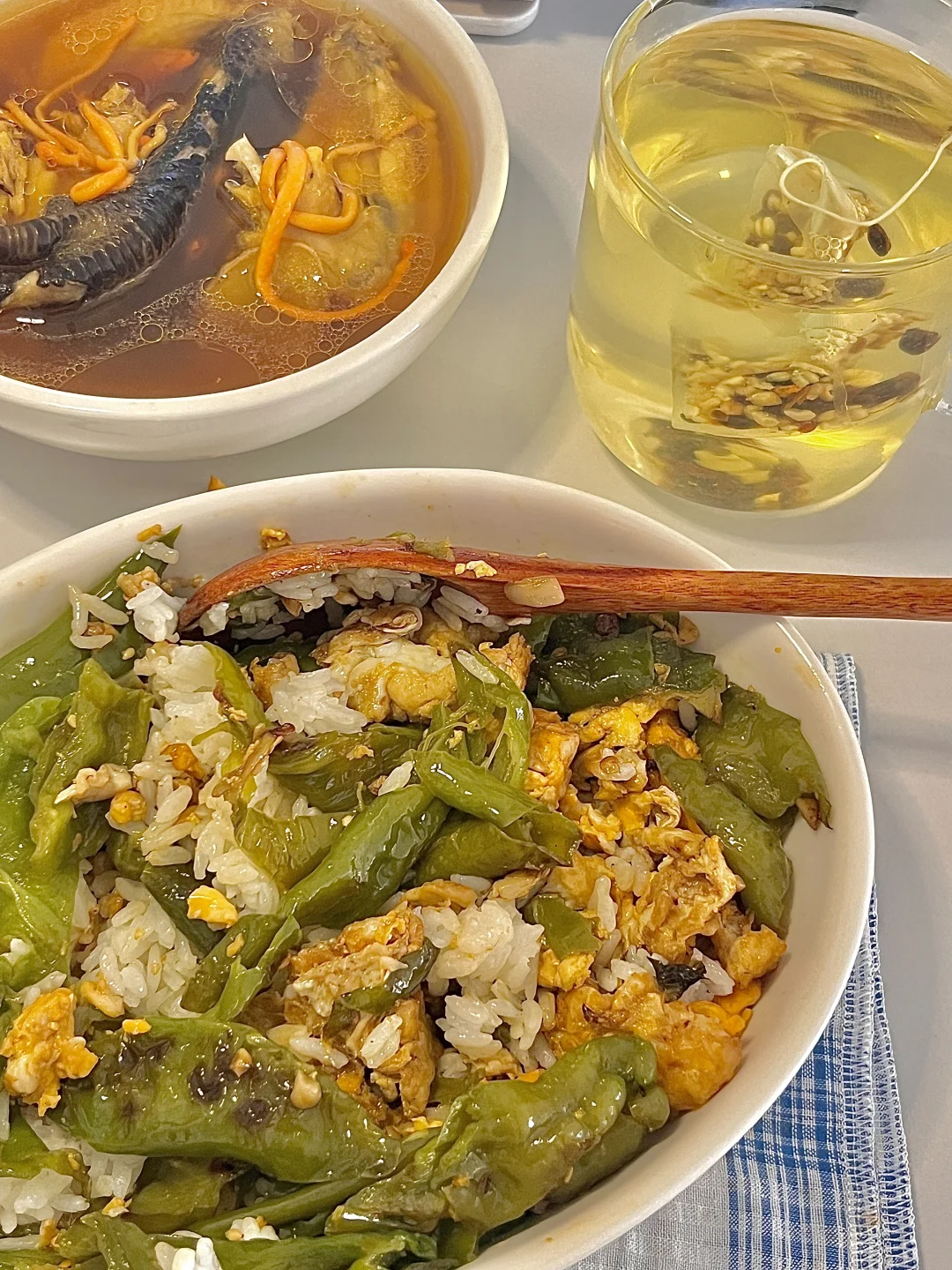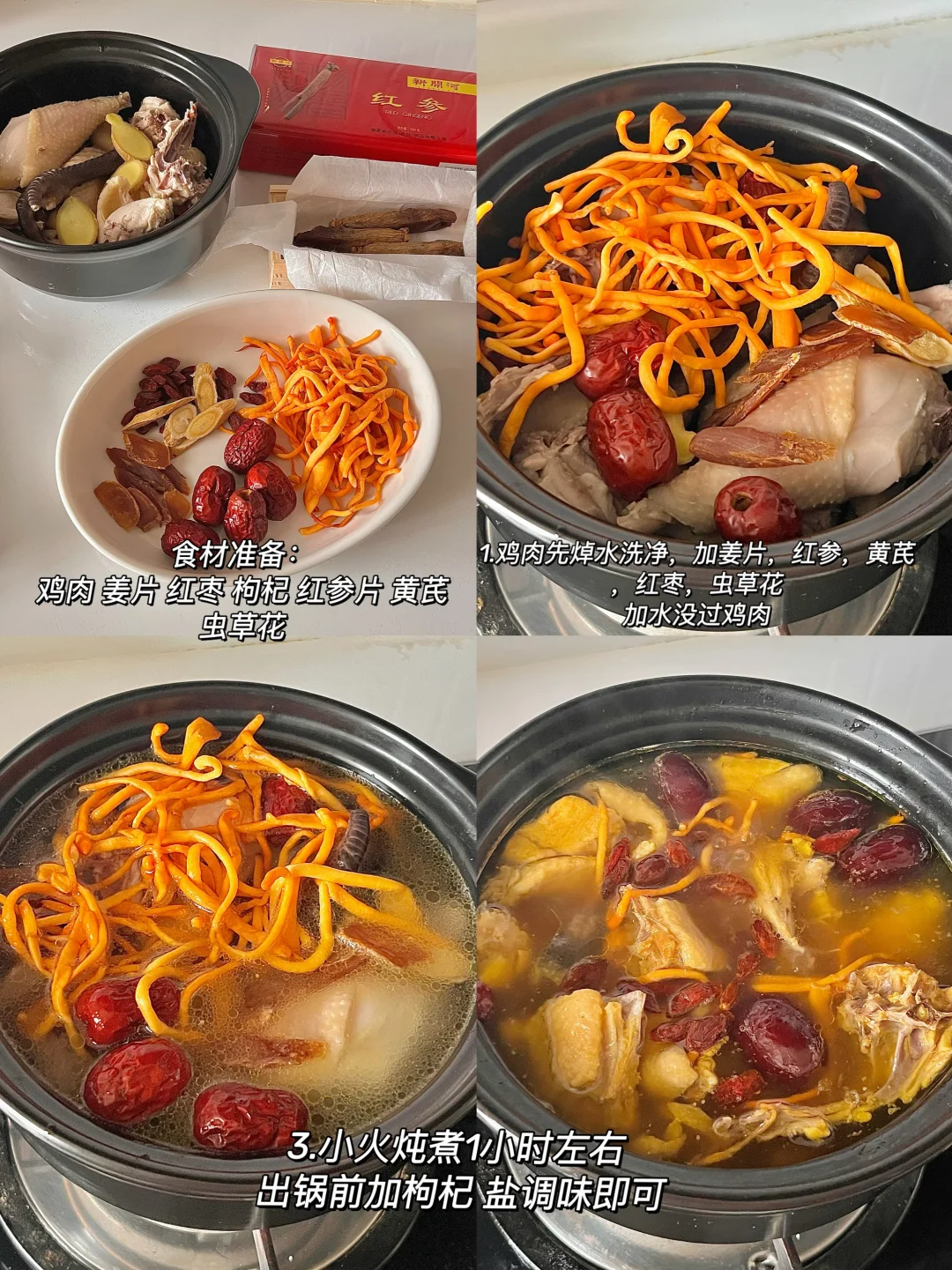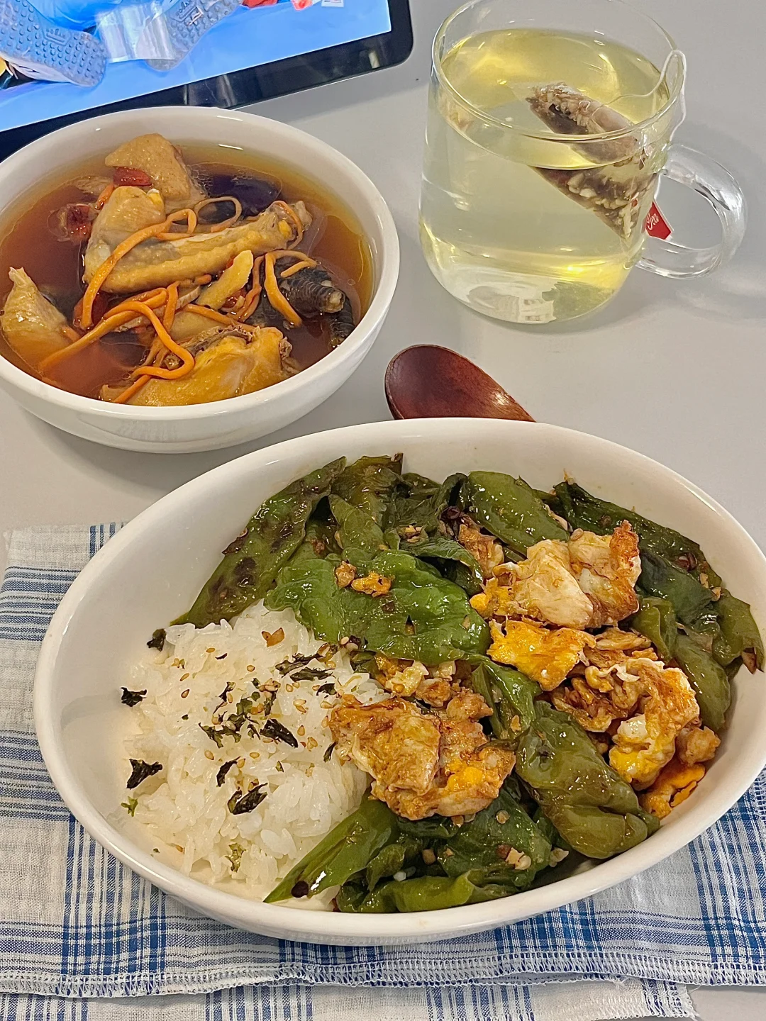 🍴今日份一人食: 红参鸡汤 辣椒炒蛋饭 大麦茶🍵 . 详细做法看图片~ . 中午在家小火慢炖了一锅巨鲜的红参鸡汤,灰常适合女孩子喝的一道滋补汤,用的土母鸡,肉质紧实。简单加几片生姜,红参片,红枣,黄芪,虫草花。炖煮出来的汤就很鲜美! 红参用的新开河红参,日常多炖汤或者泡水喝,营养价值高,红参有滋y 益❄️的好处,像姨妈前后喝 能温补气🩸,不易上火! . 不知道吃啥菜就炒一盘辣椒炒蛋,妥妥的下饭菜。 .