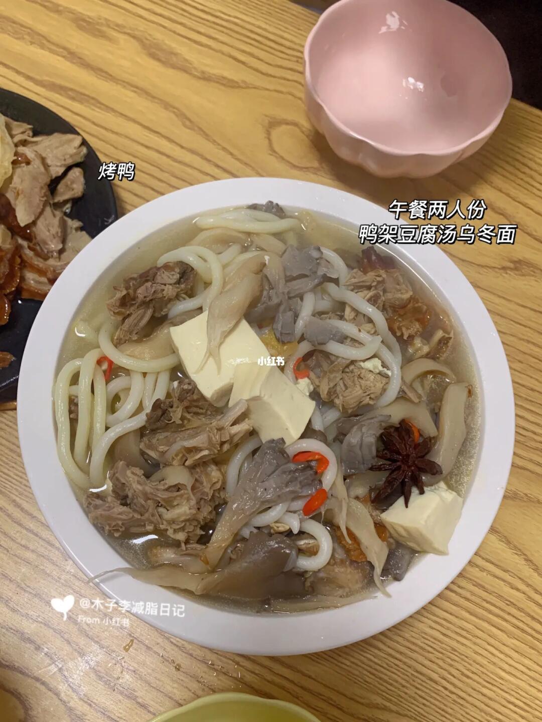 一日两餐饮食记录,吃瘦不饿瘦! 🔹初始体重:120斤 🔸现重:88(11.1称) —— 🥯早餐:盐卷|煎芦笋|青豆滑蛋|鸡肉肠|蓝莓|热拿铁|奶酪🧀 🥣午餐:鸭汤豆腐乌冬面|烤鸭 💧喝水量2000ml —— 周末天气变冷了,路上人都少了,陪着小朋友下楼逛个超市就上楼去了,风好大好冷🥶~这温降的猝不及防呀!午餐就做了个鸭汤喝,暖乎乎的! 友友们周末愉快呀~❤️