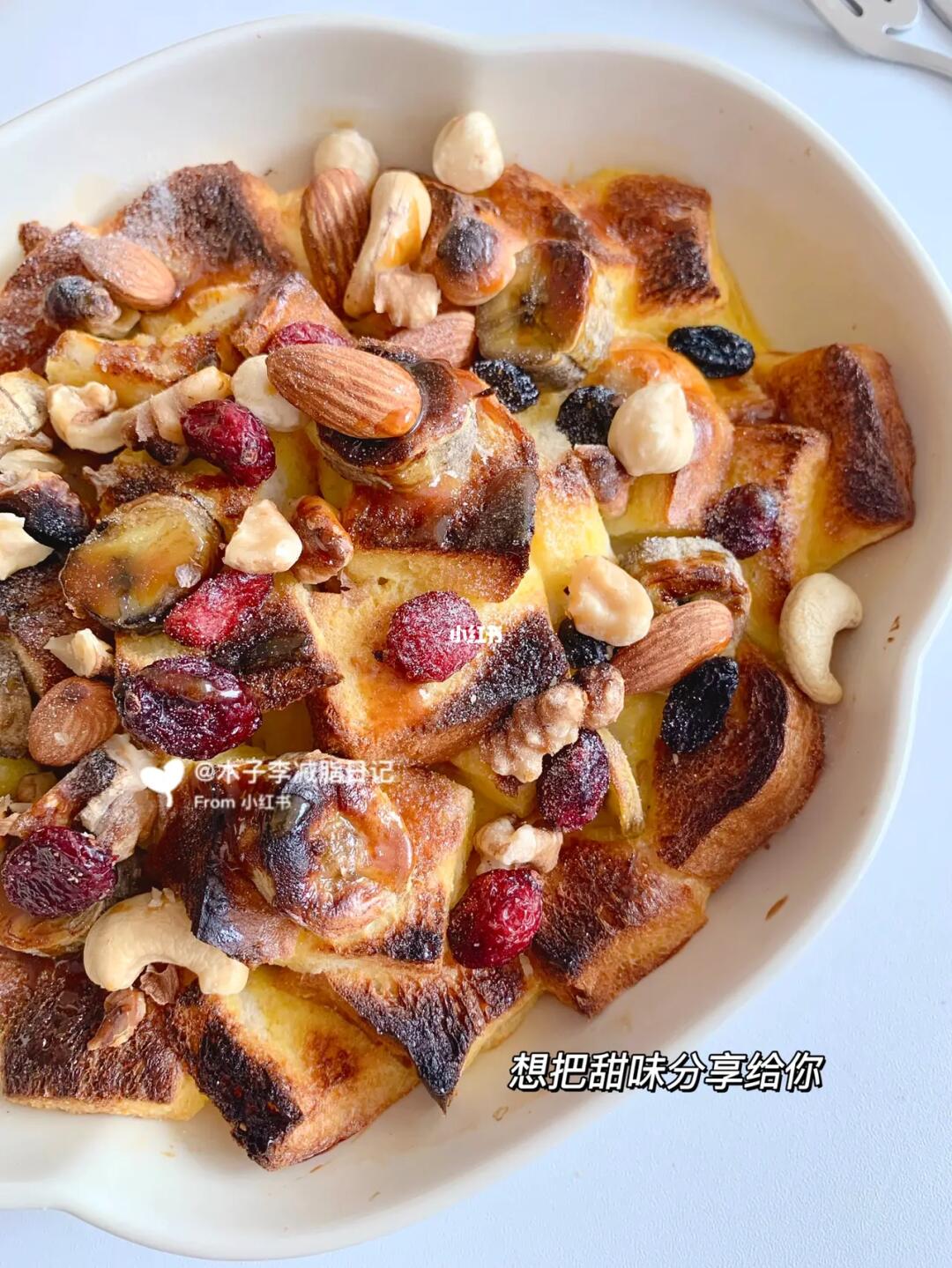 减脂早餐🍞坚果吐司布丁🍮外酥里嫩巨好吃❗️