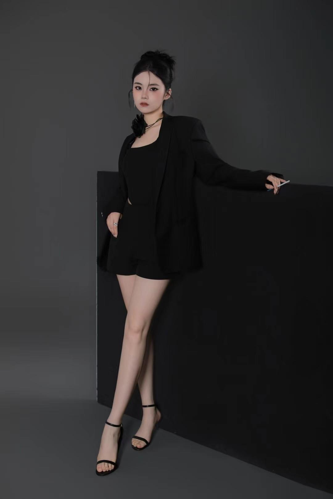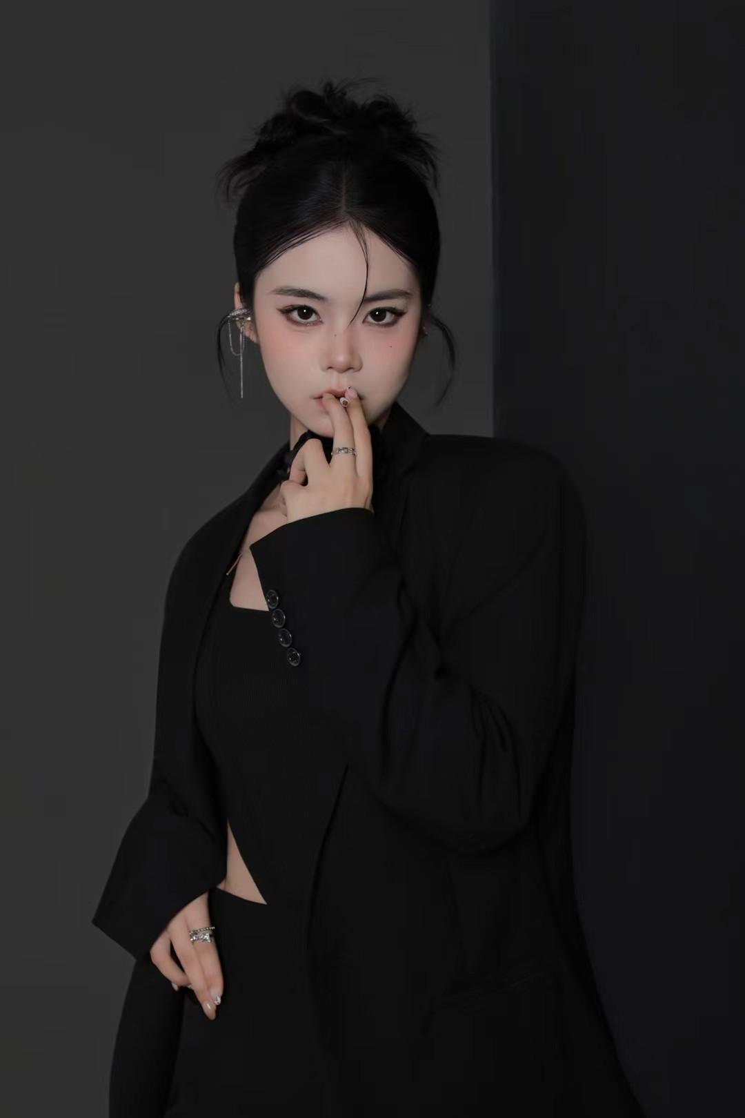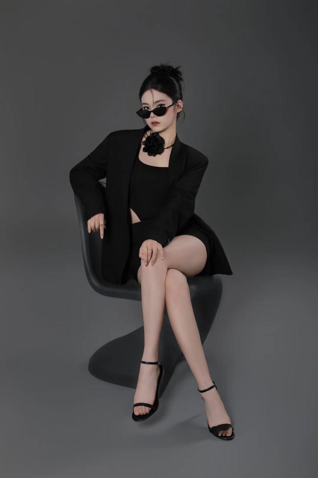 女性人像摄影作品如何有高级感? 少女摄影|NO.0176期 酷飒黑色西装 展现完美少女身材