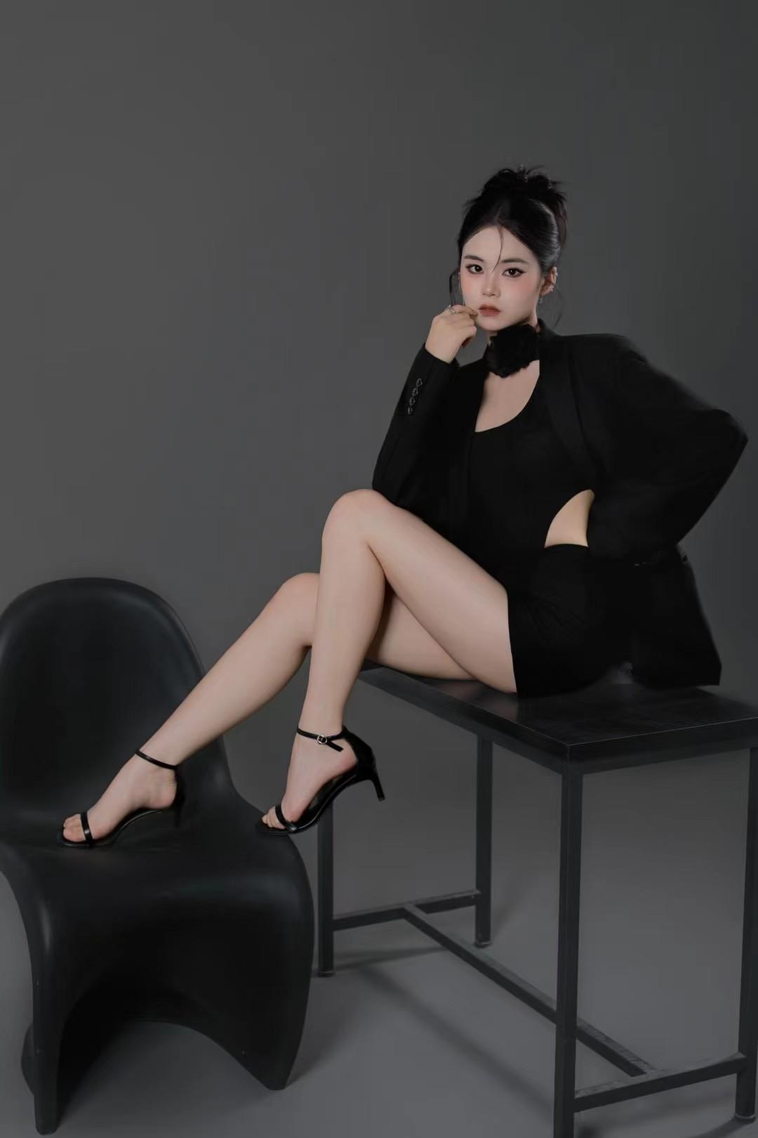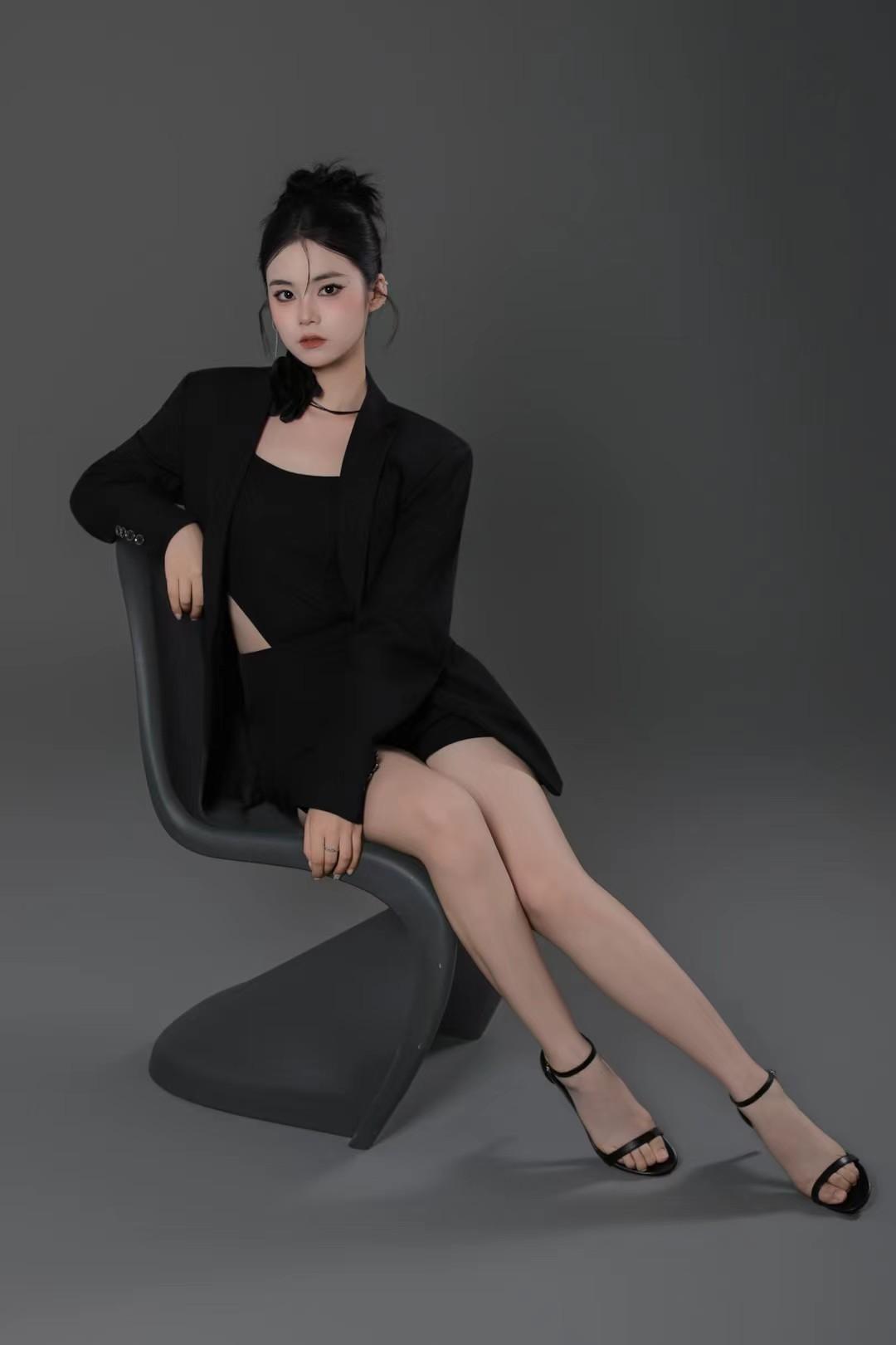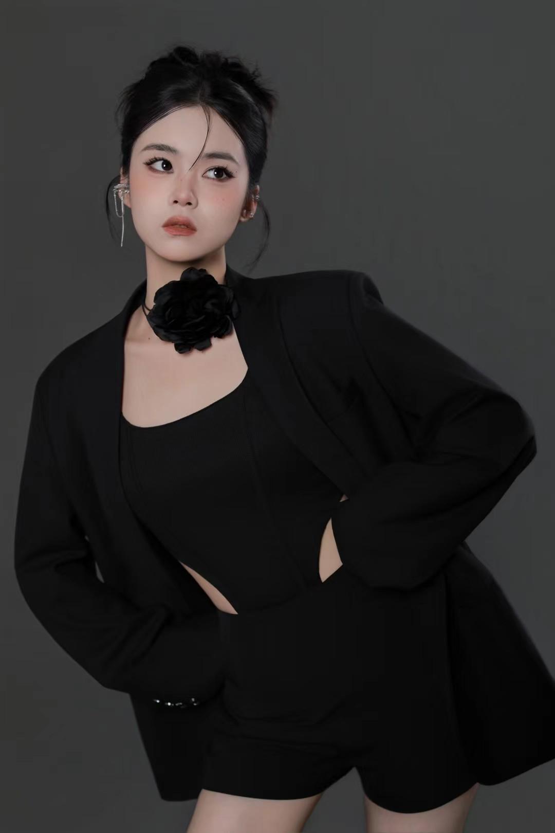女性人像摄影作品如何有高级感? 少女摄影|NO.0176期 酷飒黑色西装 展现完美少女身材